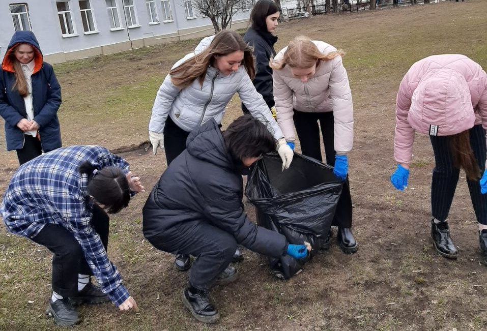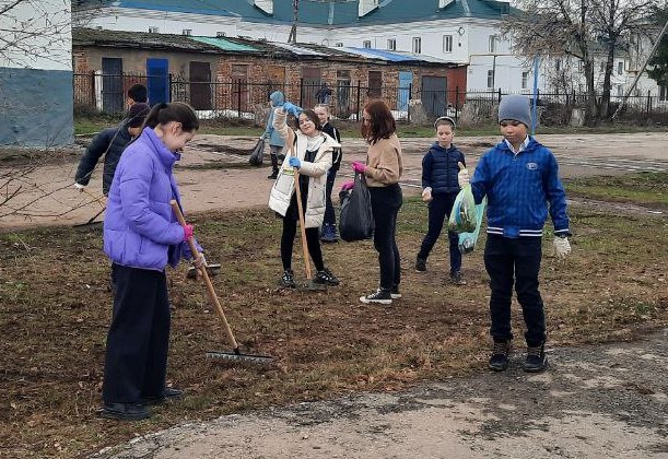 Дети с радостью приводили в порядок школьную территорию: собирали мусор и сухую траву.