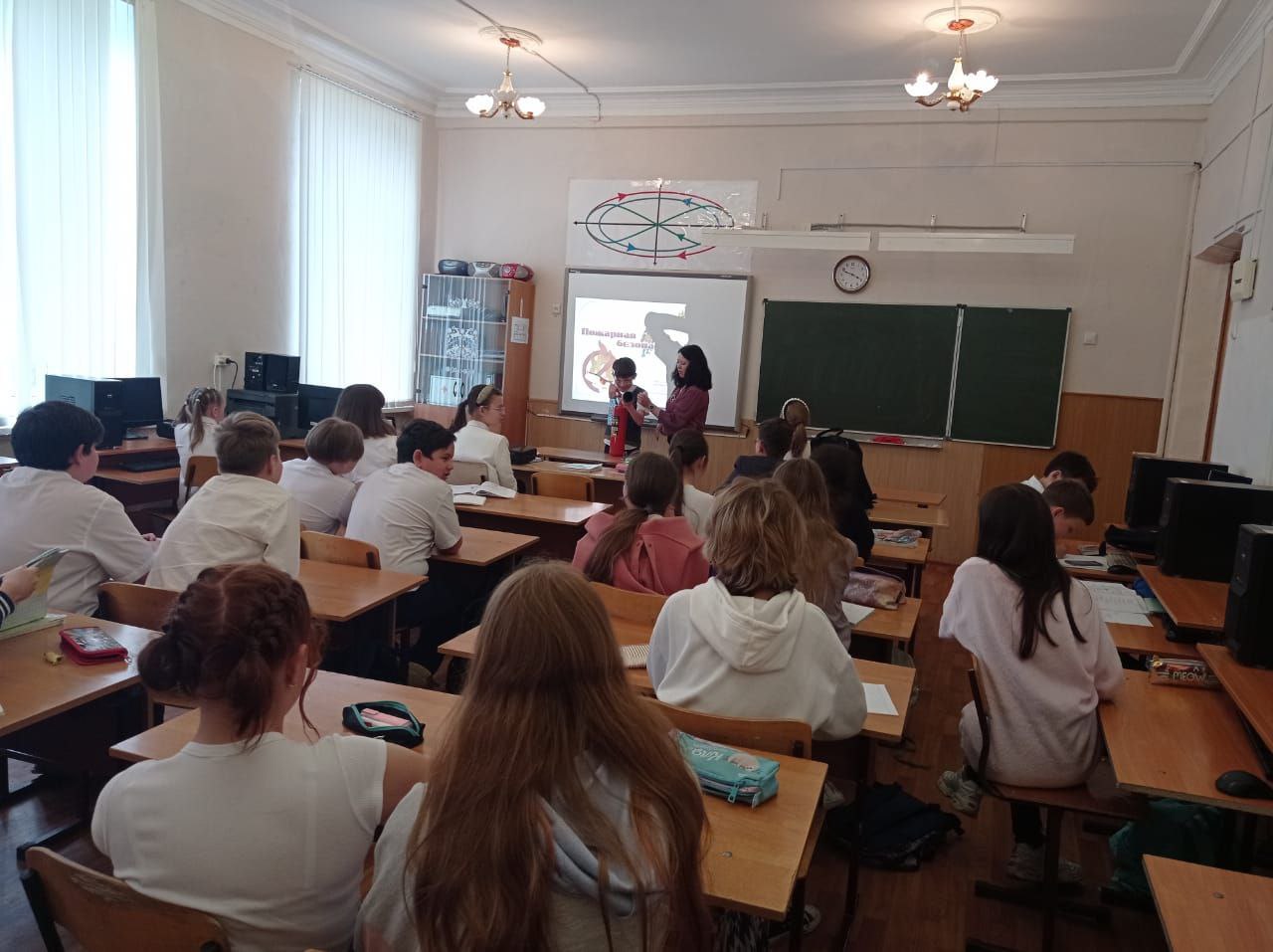 В классах были проведены беседы, классные часы, интеллектуальные игры на темы: «Огонь ошибок не прощает», «О пожаре знаю все!», "Пожарным можешь ты не быть, но правила пожарной безопасности знать обязан", «Огонь - друг и враг человека». Данные мероприятия были направлены на умение правильно действовать в чрезвычайных ситуациях, закрепление знаний правильного поведения при пожаре, привитие навыков осторожного поведения с огнём.