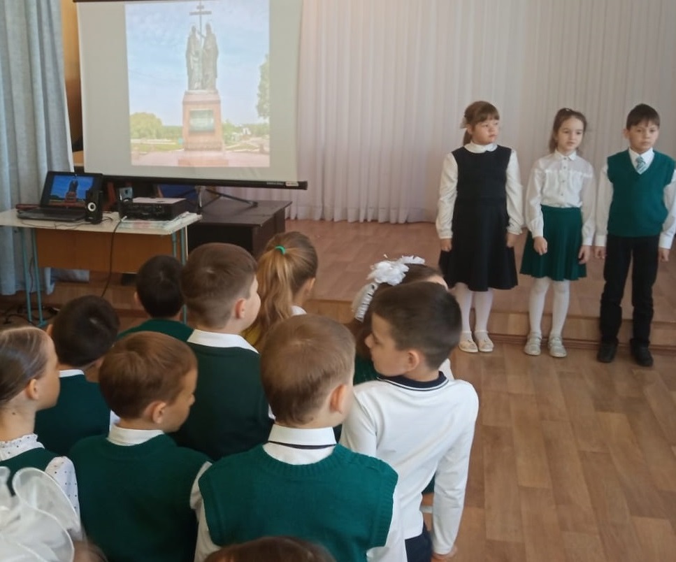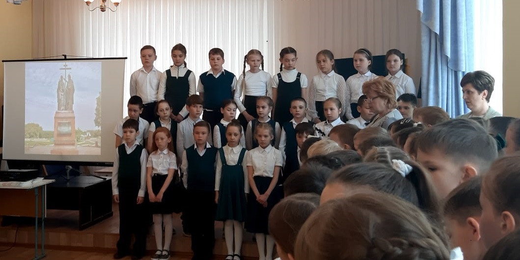 День славянской письменности и культуры – это единственный в нашей стране церковно-государственный праздник. В стенах гимназии младшего корпуса для учащихся 1-3 классов было проведено внеклассное мероприятие. Это мероприятие расширило знания и представления учащихся об истории возникновения славянской письменности и его роли в развитии человечества, пробудило интерес к истории письменности и культуры своего народа, оно воспитывает уважение и понимание русской культуры, славянских традиций. На данном мероприятии дети собирали пословицы, исполнили песню «У моей России длинные косички», прослушали гимн Кириллу и Мефодию.