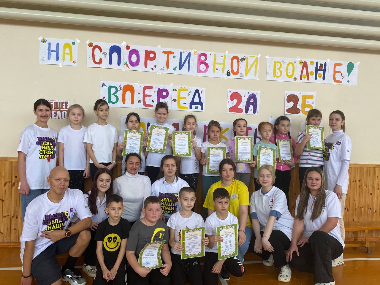 28 января, в субботу, команда волонтёров «Колхида» организовала такой спортивный праздник для детей и родителей 2А и 2Б классов в спортивном зале медицинского колледжа. Дети поделились на команды «Победа» и «Молния».