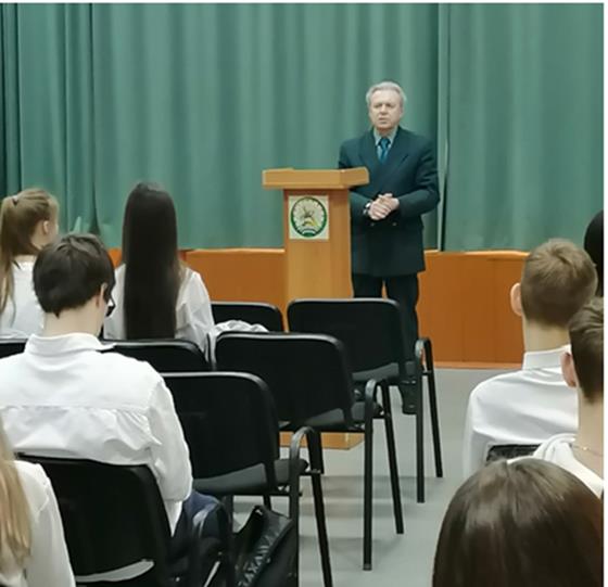 Цель его визита заключалась в военно-профессиональной ориентации обучающихся 10-11-х классов, оказание старшеклассникам содействия в выборе образовательного учреждения для получения военного профессионального образования, реализации индивидуального потенциала и ориентирования их на выбор профессий, пользующихся перспективным спросом на рынке труда, привлечение учащихся к получению профессии Офицера, а также повышения престижа военной службы среди молодежи. Он ознакомил учащихся требованиями, предъявляемыми к кандидатам для зачисления в высшие военно-учебные заведения Министерства обороны России, и другими аспектами поступления