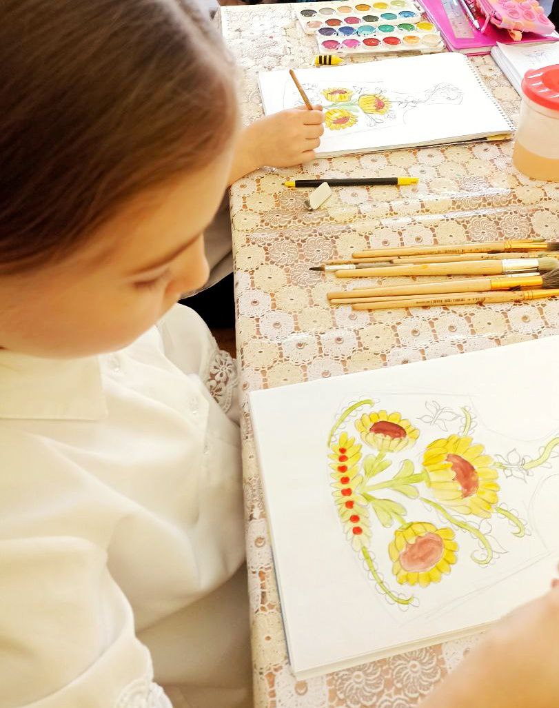 Проявлять уважение к историческому и культурному наследию России, символам, праздникам, памятникам поможет мастер-класс «Севастопольская роспись», который советник директора по воспитанию и взаимодействию с детскими общественными объединениями провела среди детей начального звена. Ребята познакомились с росписью и узнали, что Севастопольская художественная роспись возникла в 1973 году.