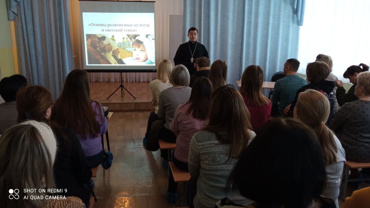 Для проведения процедуры самоопределения на 2023-2024 учебный год 22 марта 2023 года проведены родительские собрания в третьих классах с участием централизованных религиозных организаций по вопросам ознакомления с содержанием курса ОРКСЭ, выбора модуля курса для изучения в четвертом классе. На родительские собрания были приглашены представители традиционных конфессий: Священник Димитрий клирик храма в честь святителя Николая г. Белебея. Он познакомил присутствующих с модулями «Основы православной культуры», осветил основные направления курса ОРКСЭ.