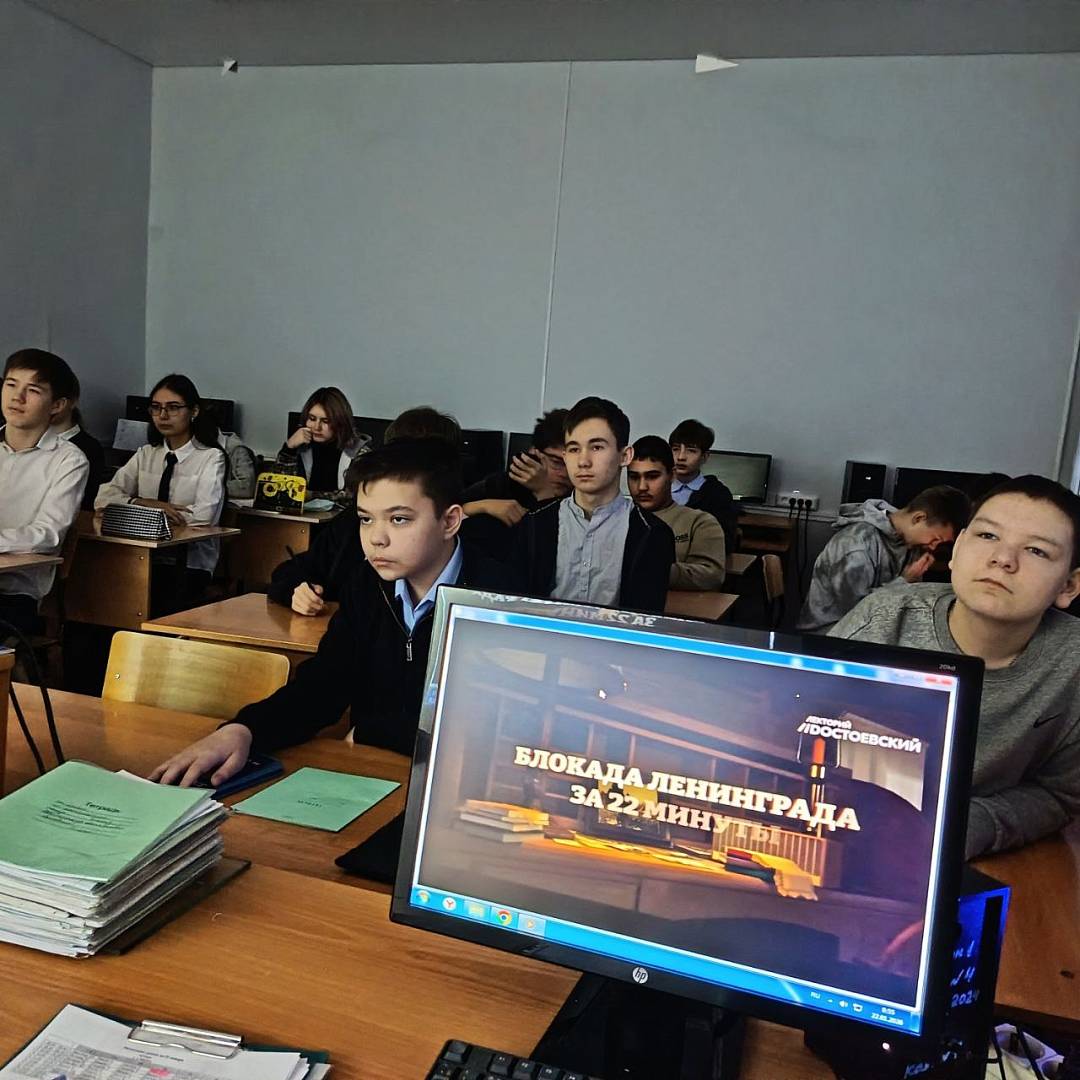 Программа включала просмотр документального фильма, посвященного героическим событиям времен Великой Отечественной войны. Документальная хроника помогла ребятам погрузиться в атмосферу суровых испытаний, выпавших на долю жителей осаждённого города. После просмотра фильма состоялось активное обсуждение увиденного. Ученики поделились своими впечатлениями, отвечали на вопросы и размышляли о значимости победы над врагом. Они выразили глубокое уважение и благодарность ветеранам, чьи усилия обеспечили освобождение родного города.