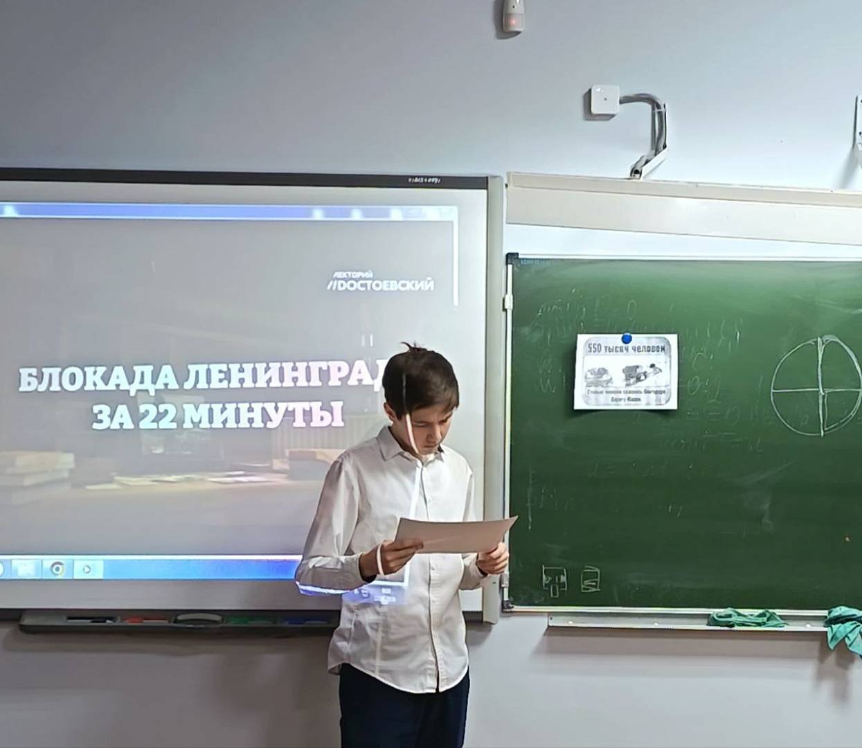 Советник директора по воспитанию нашей гимназии сегодня организовала памятный классный час в 8А и 8В классах, посвященный освобождению Ленинграда от фашистской блокады. Мероприятие прошло трогательно и познавательно, вызвав живой отклик среди учеников.