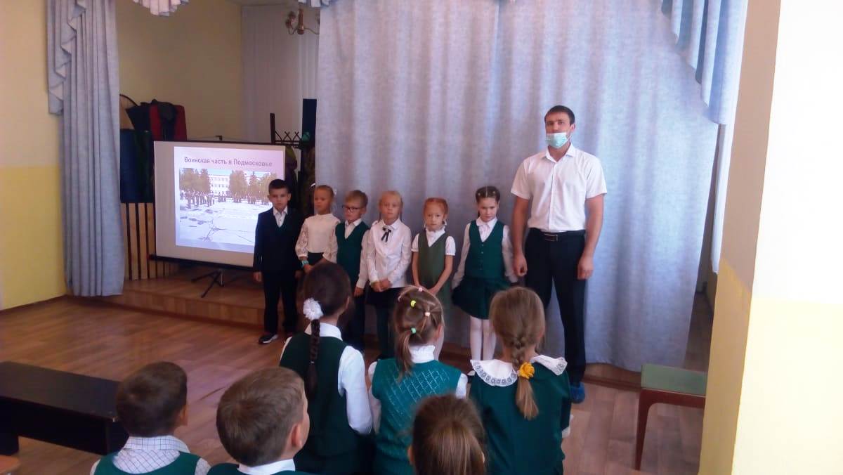 10 сентября 2021 г. в рамках "Урока мира" в начальных классах педагогом-организатором Тулегеновой Л.Г. была проведена линейка с приглашением родителя Озерова Андрея Николаевича, который служил в войсках ВДВ в подмосковье.