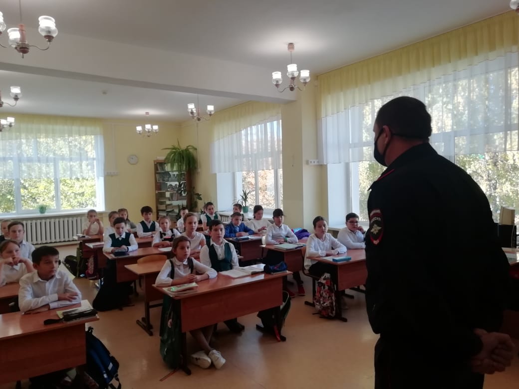 01.10.2021 года в рамках формирования навыков законопослушного поведения в МАОУ гимназия №1 был приглашен инспектор ОДН ОУУП и ПДН ОМВД России по Белебеевскому району капитан полиции Коротков Павел Александрович. Он рассказал о принципах и путях снижения факторов риска правонарушений в деятельности несовершеннолетнего. Дал советы, как предвидеть опасные и чрезвычайные ситуации социального характера. Лекцию прослушали учащиеся 4-х классов.