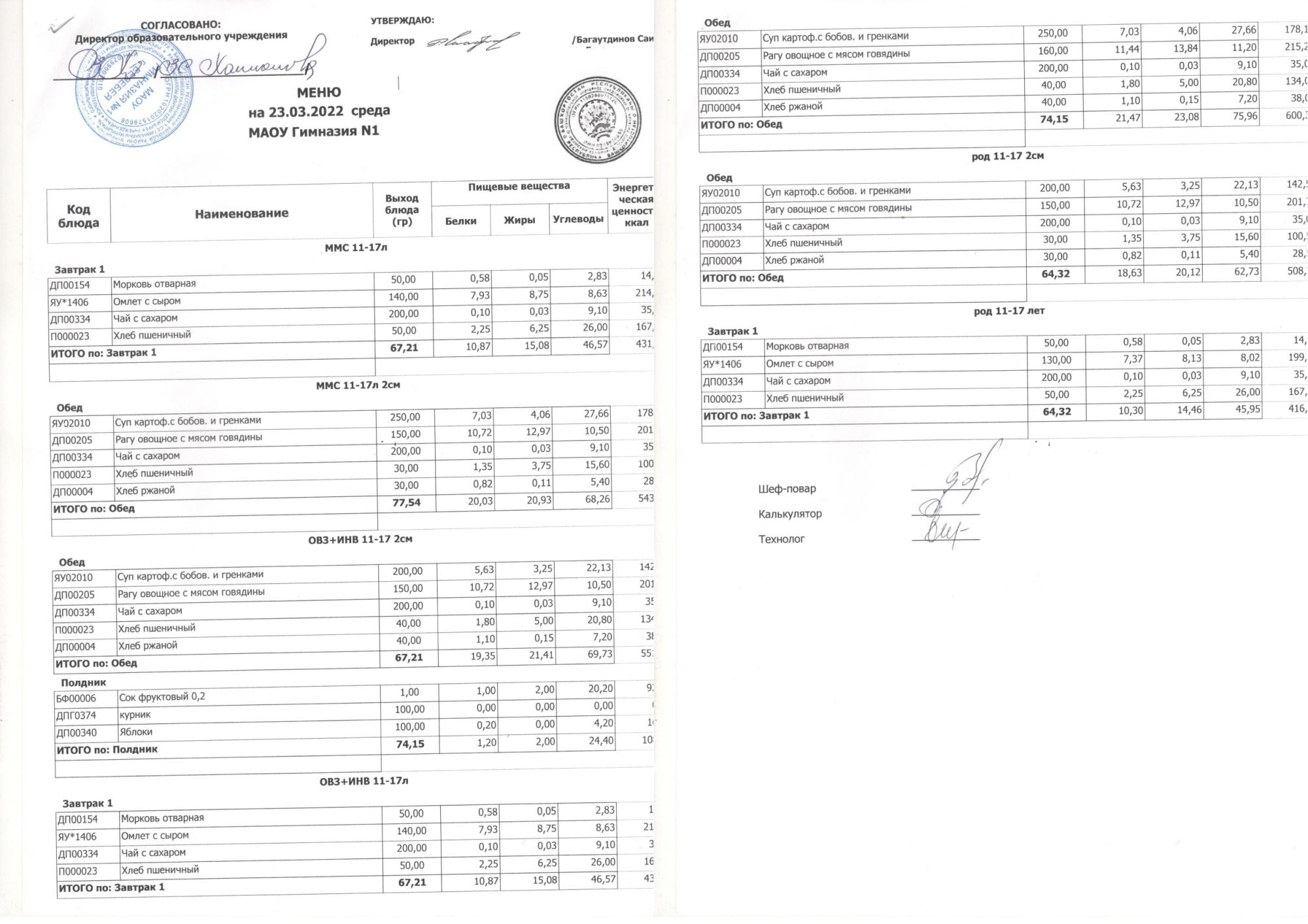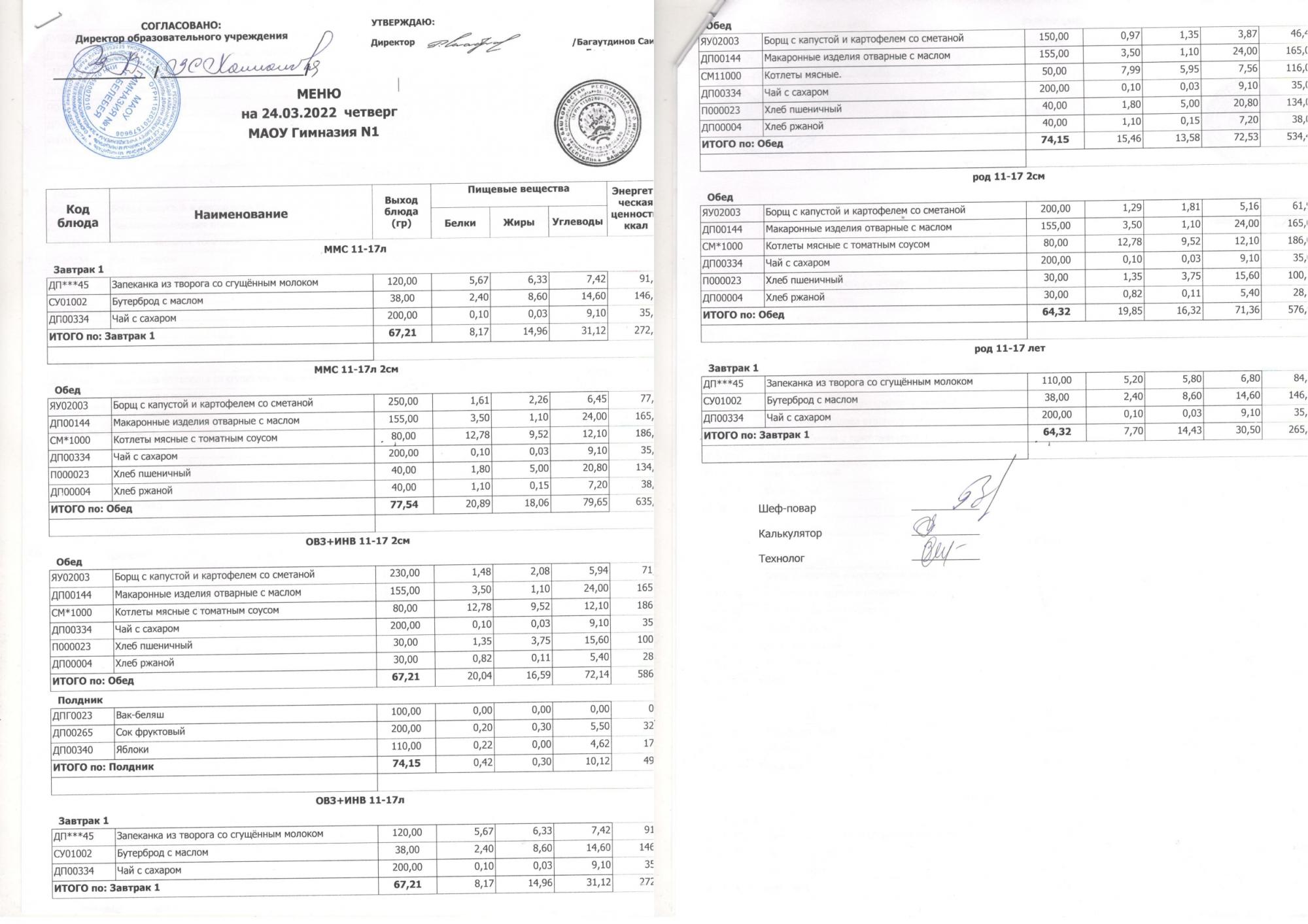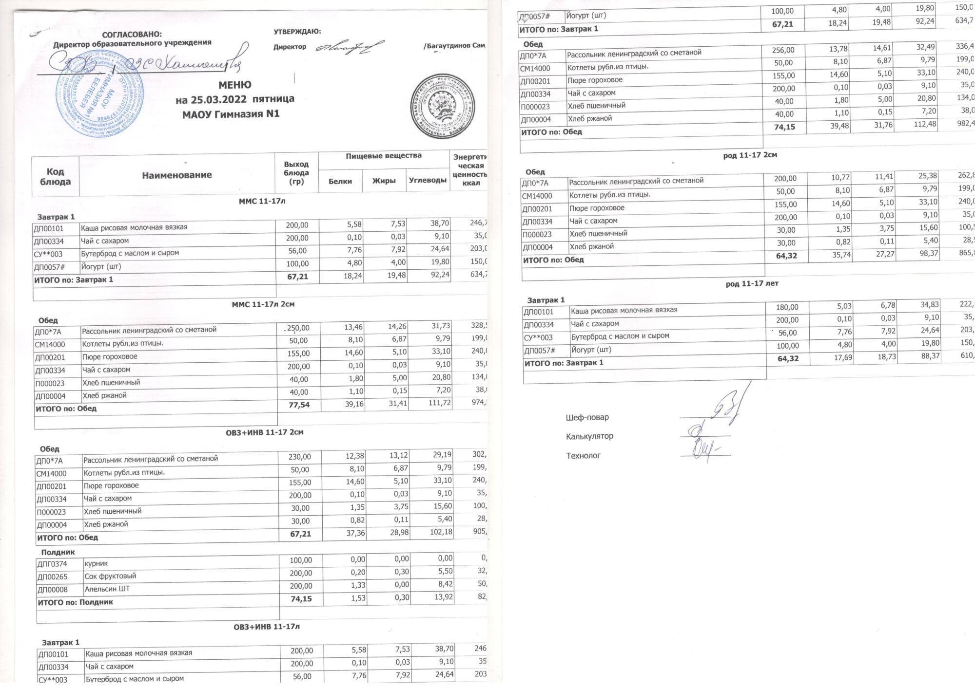 В данном разделе ежедневно размещается меню в виде скан-документа, а также фотографии блюд.
