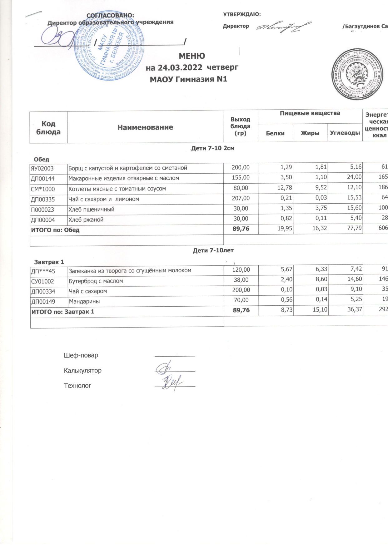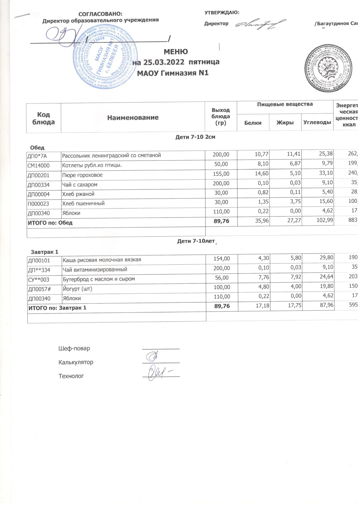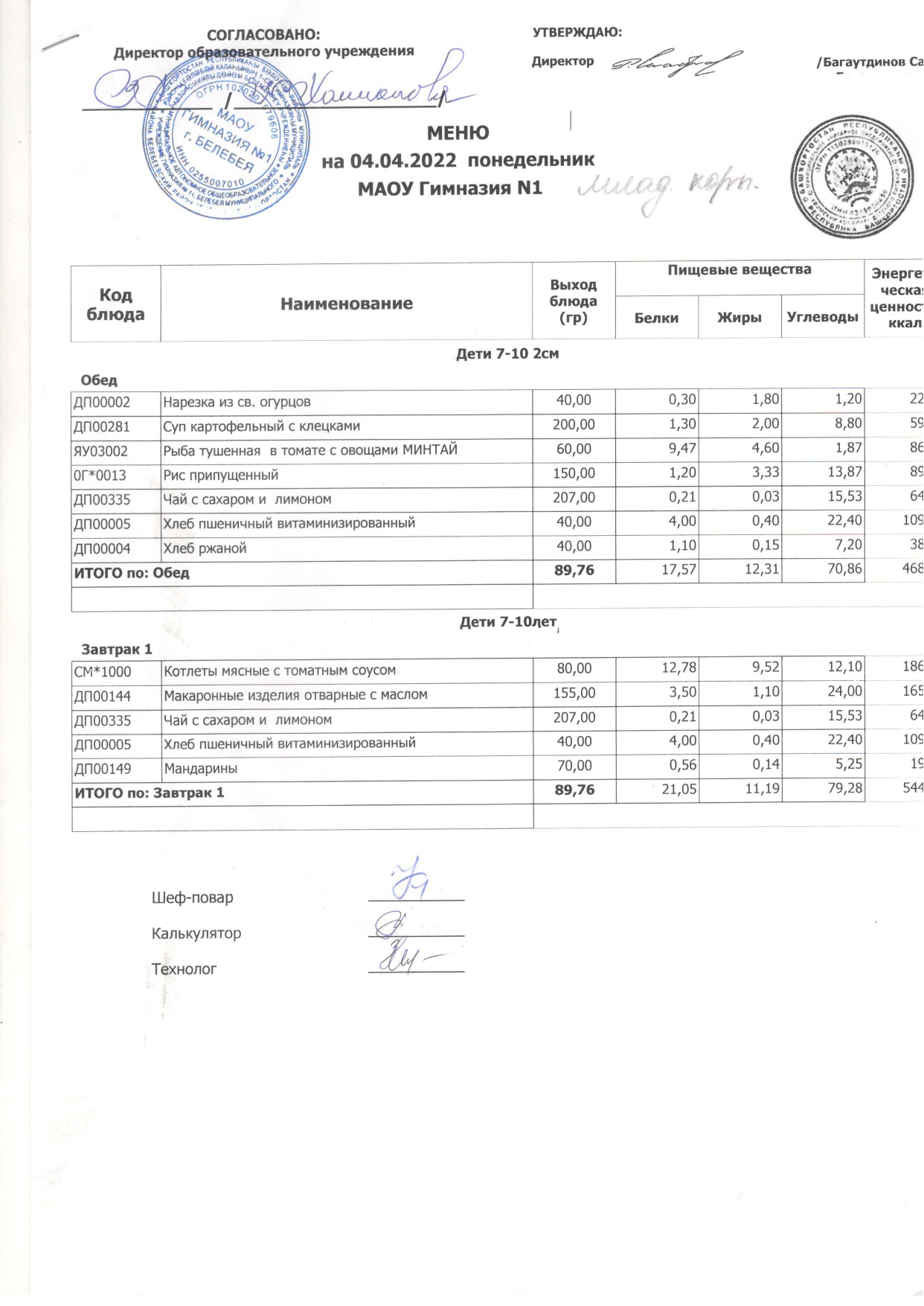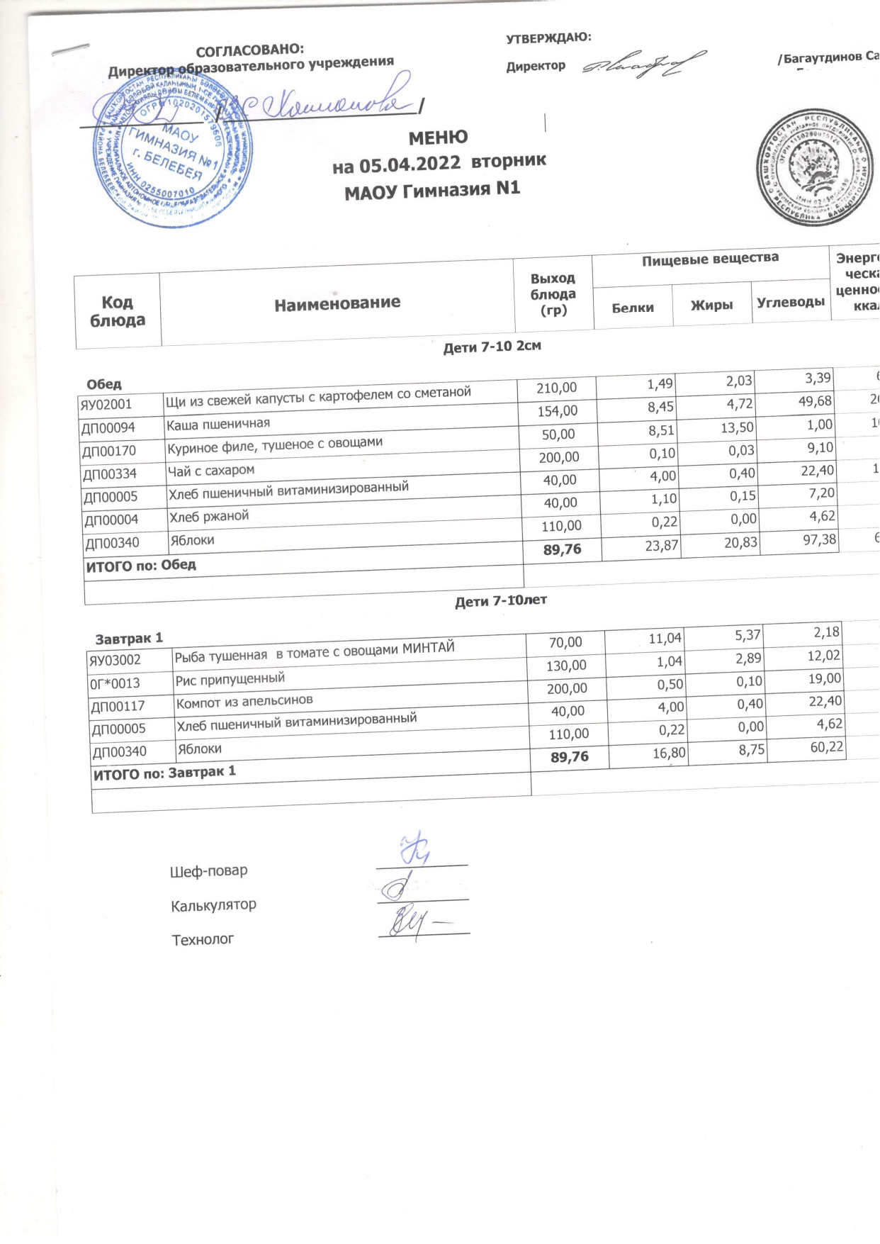 (Завтрак, 1-4 кл.)