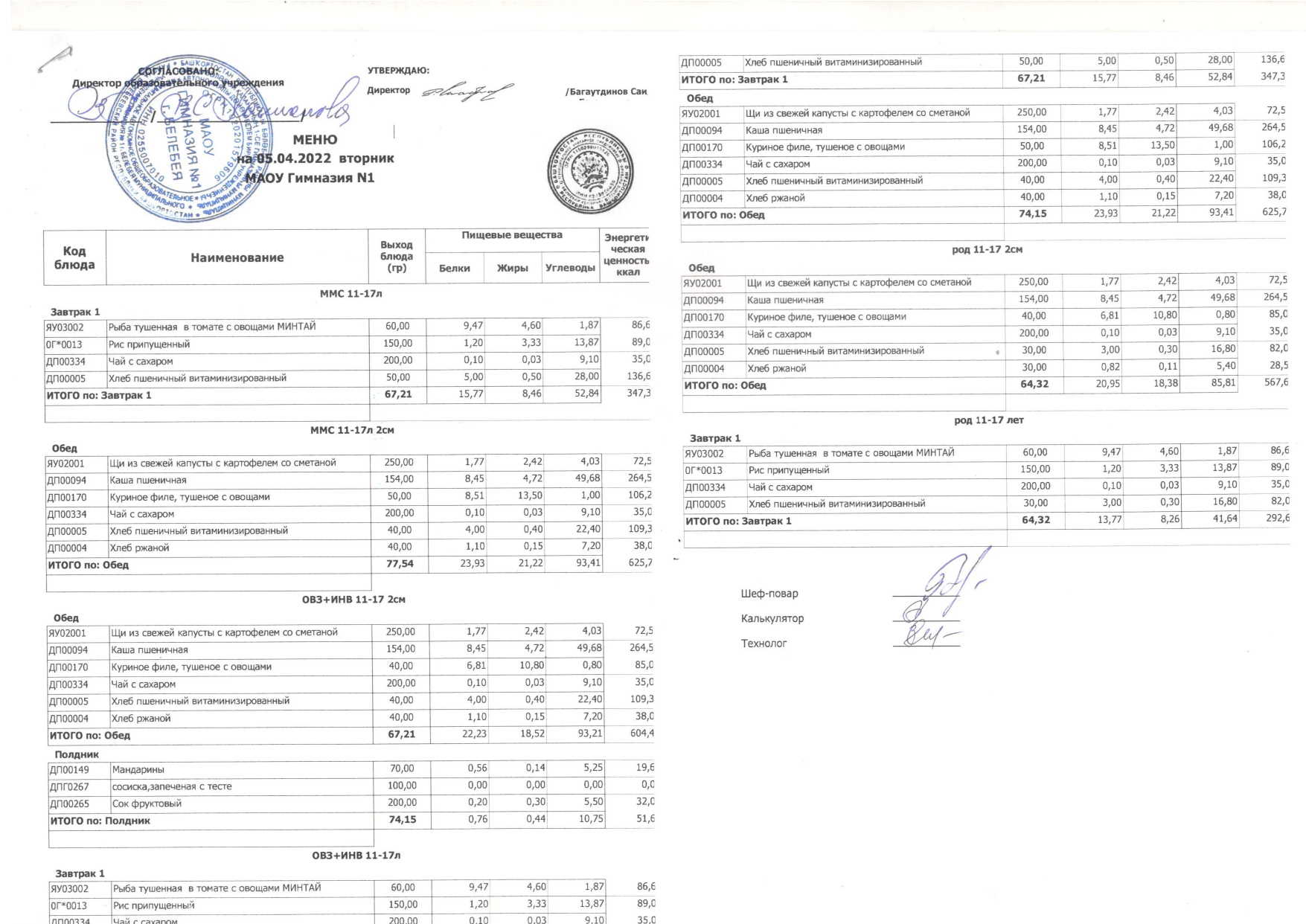 (Обед, ОВЗ, ИНВ)