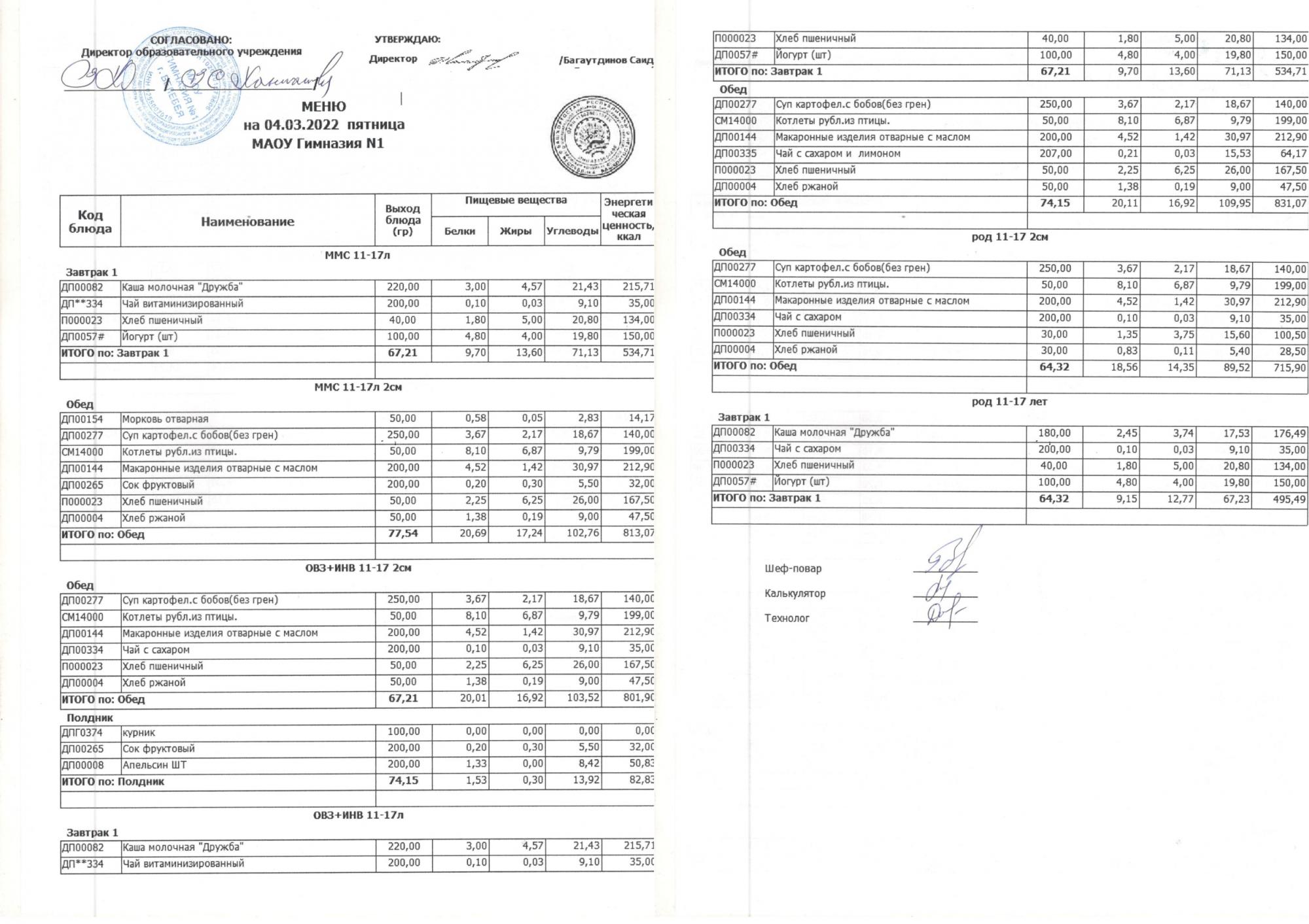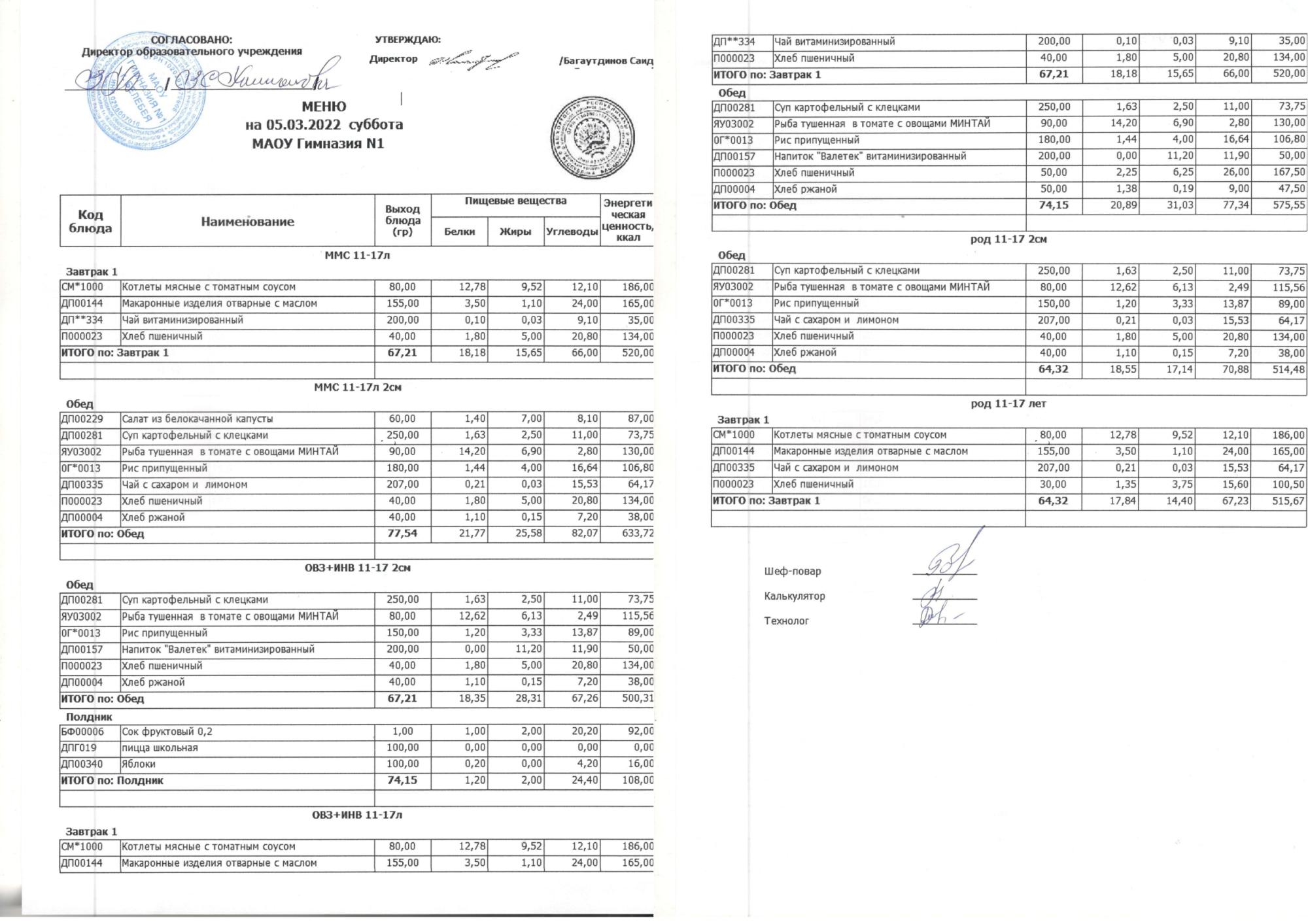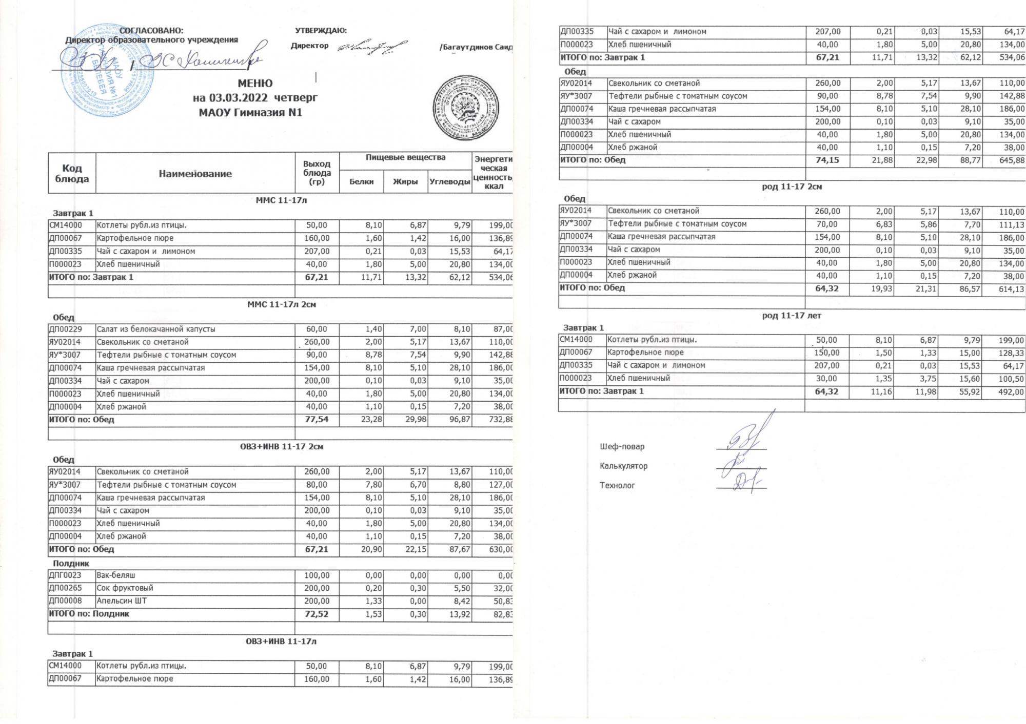 В данном разделе ежедневно размещается меню в виде скан-документа, а также фотографии блюд.