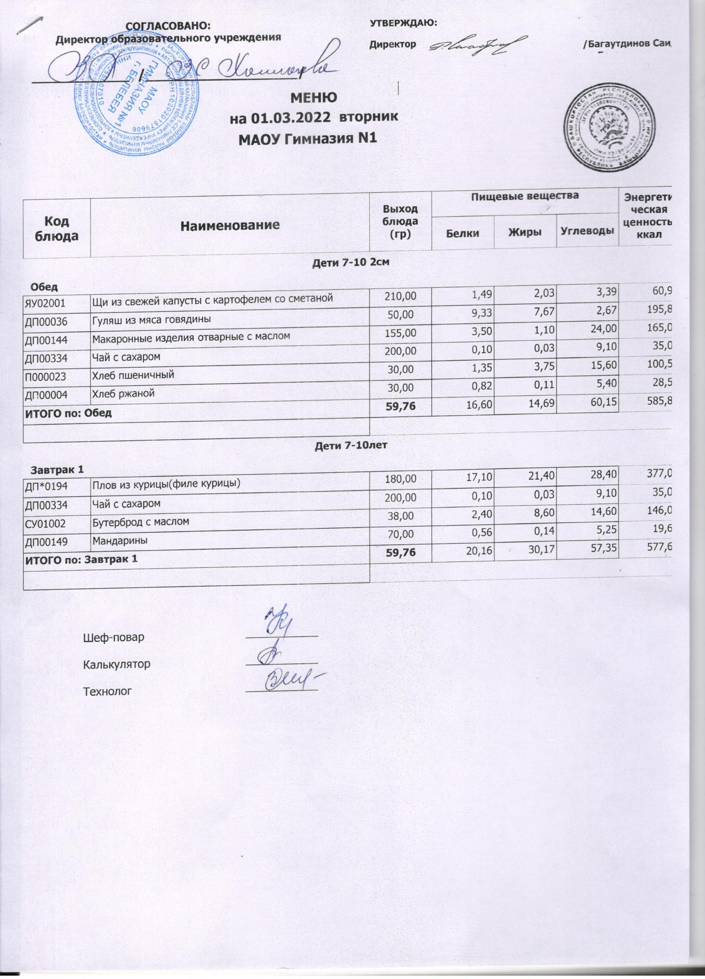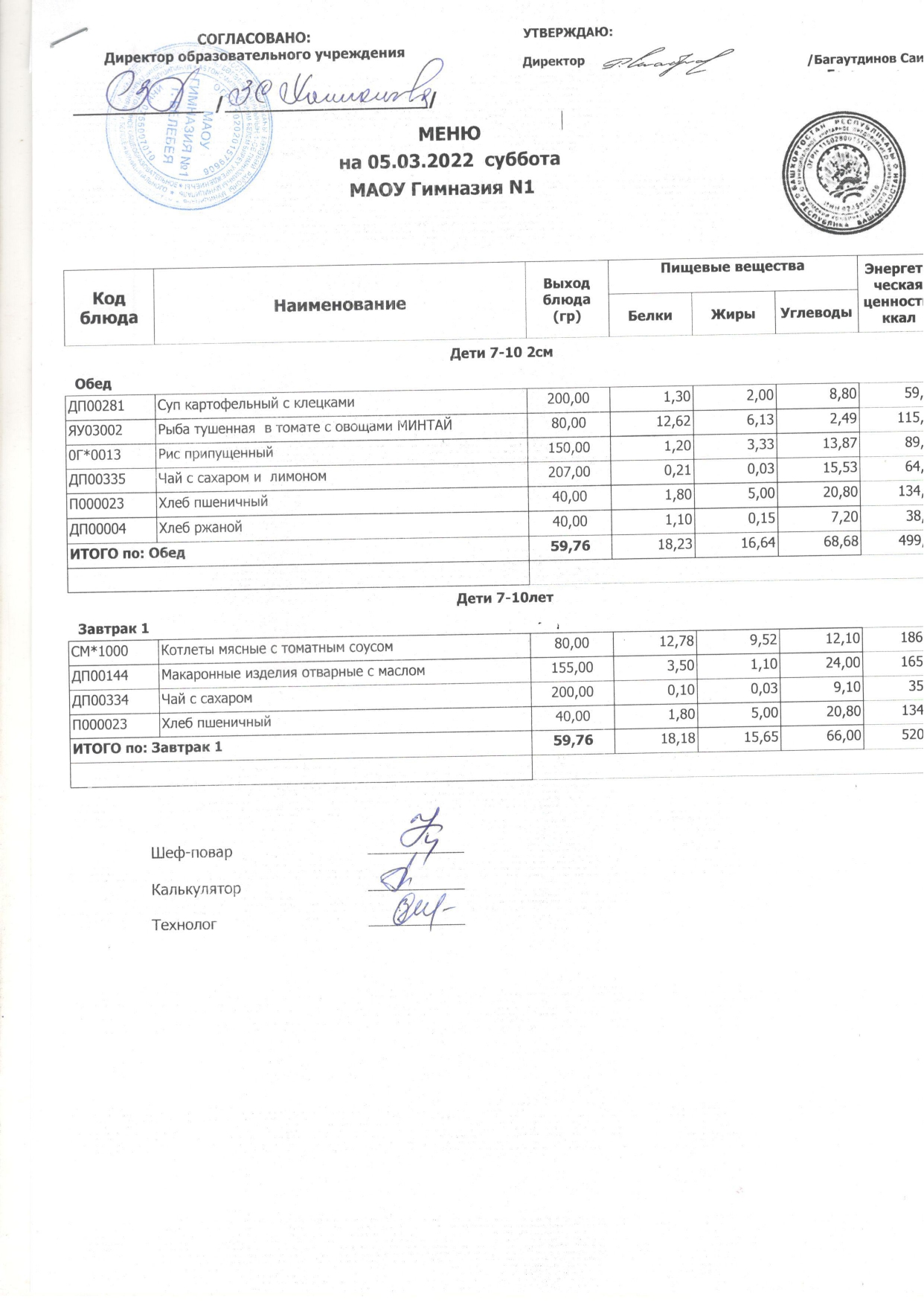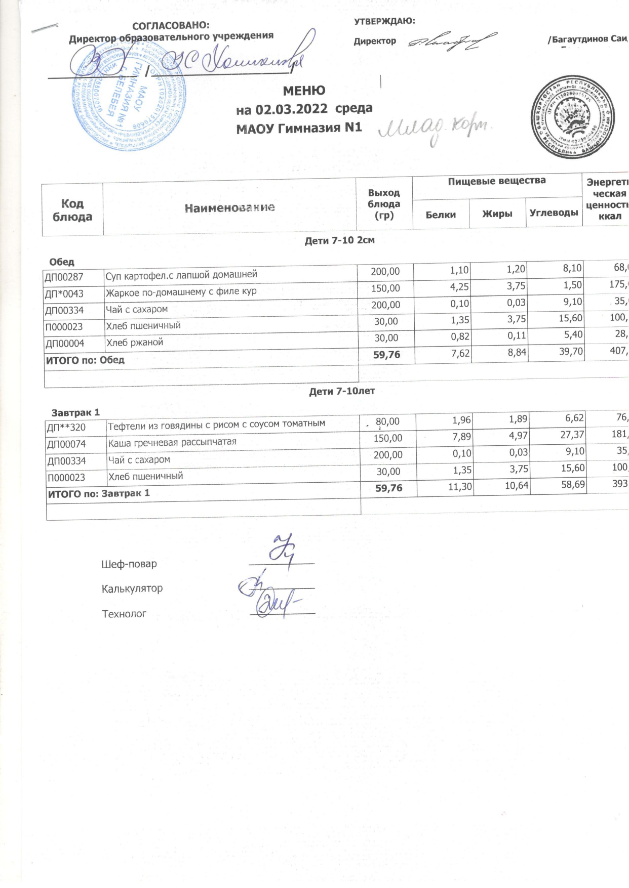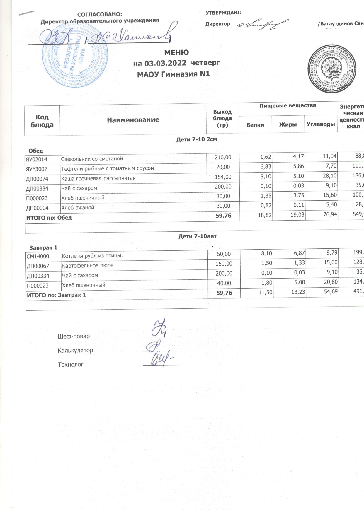 В данном разделе ежедневно размещается меню в виде скан-документа, а также фотографии блюд.