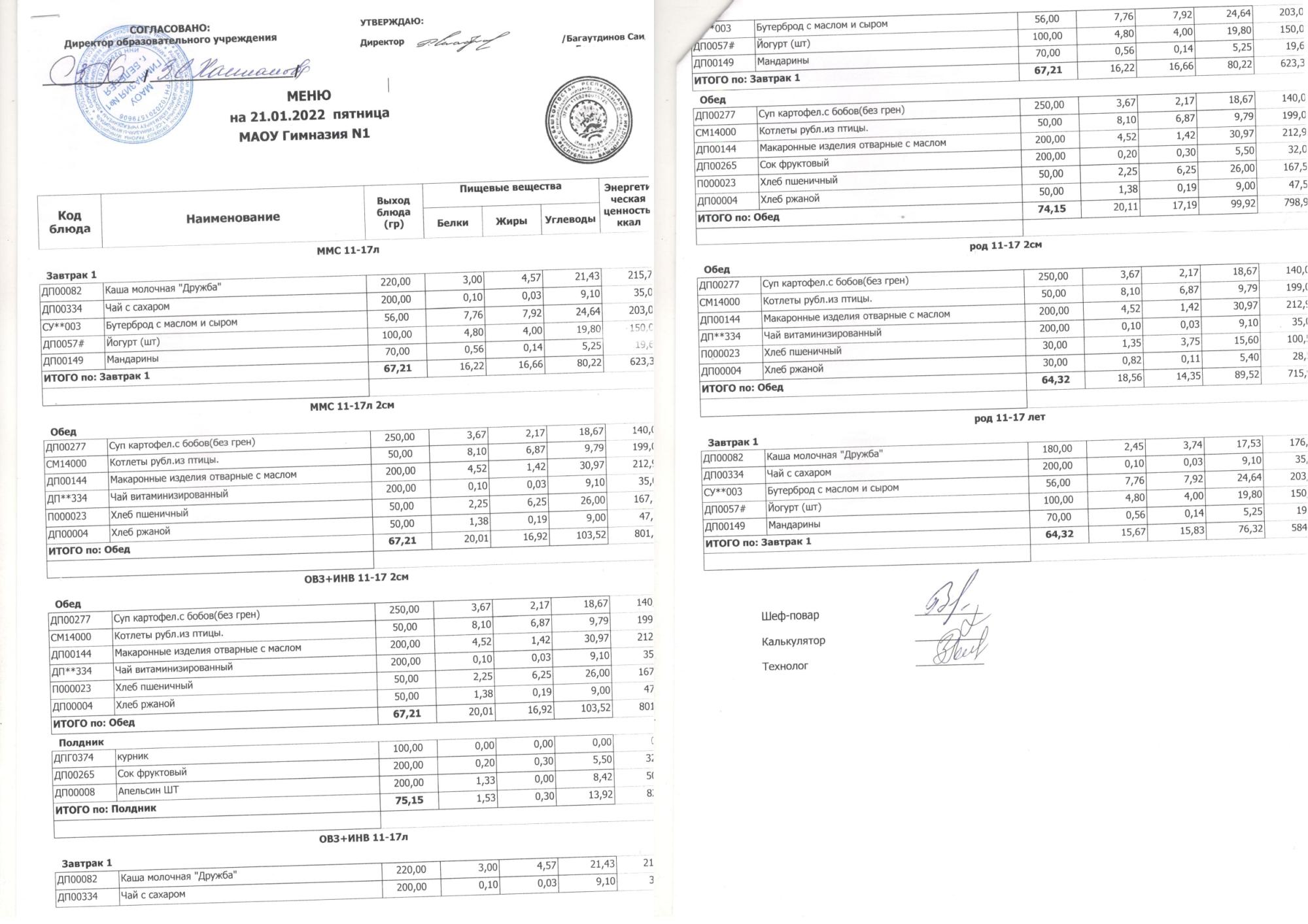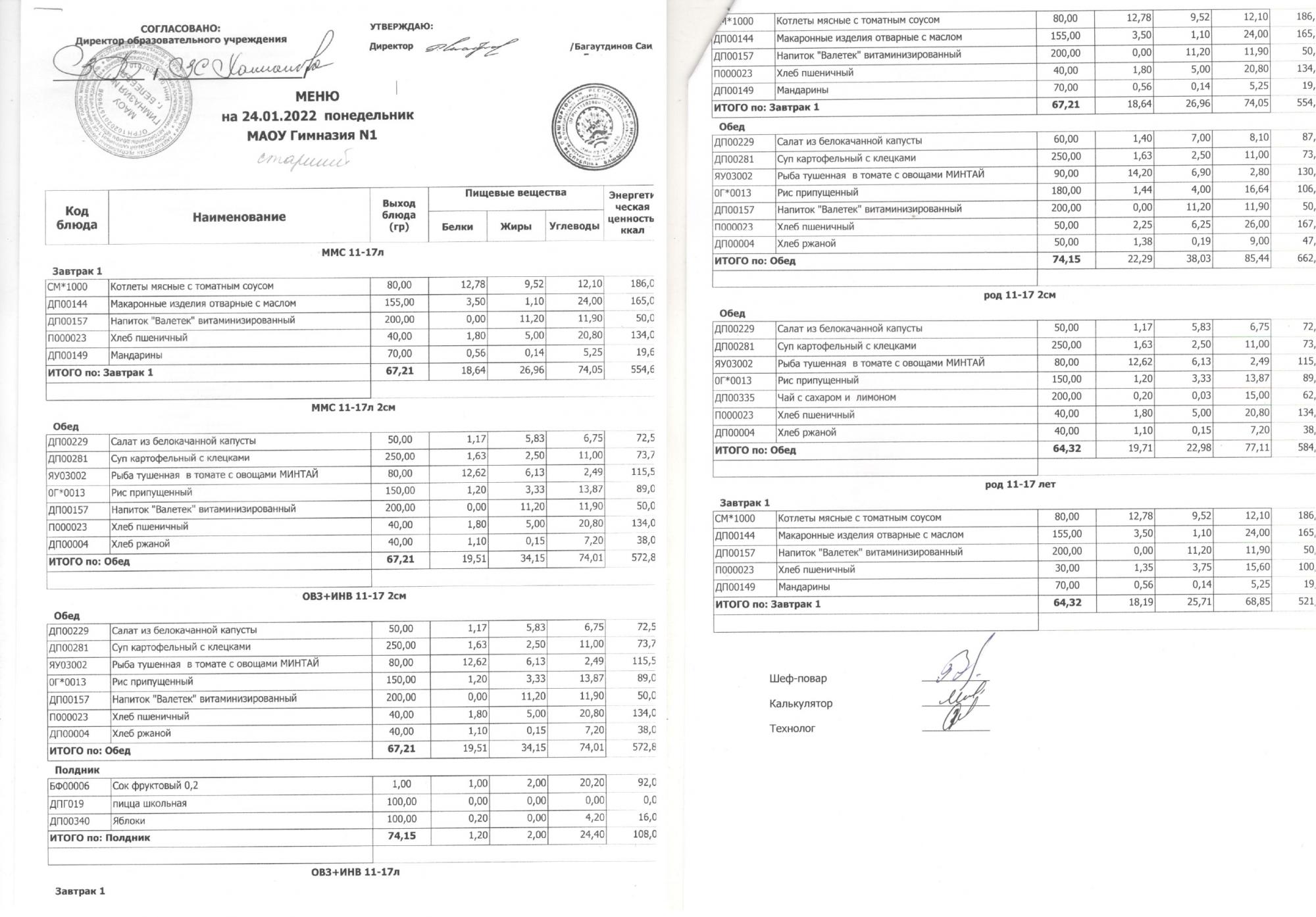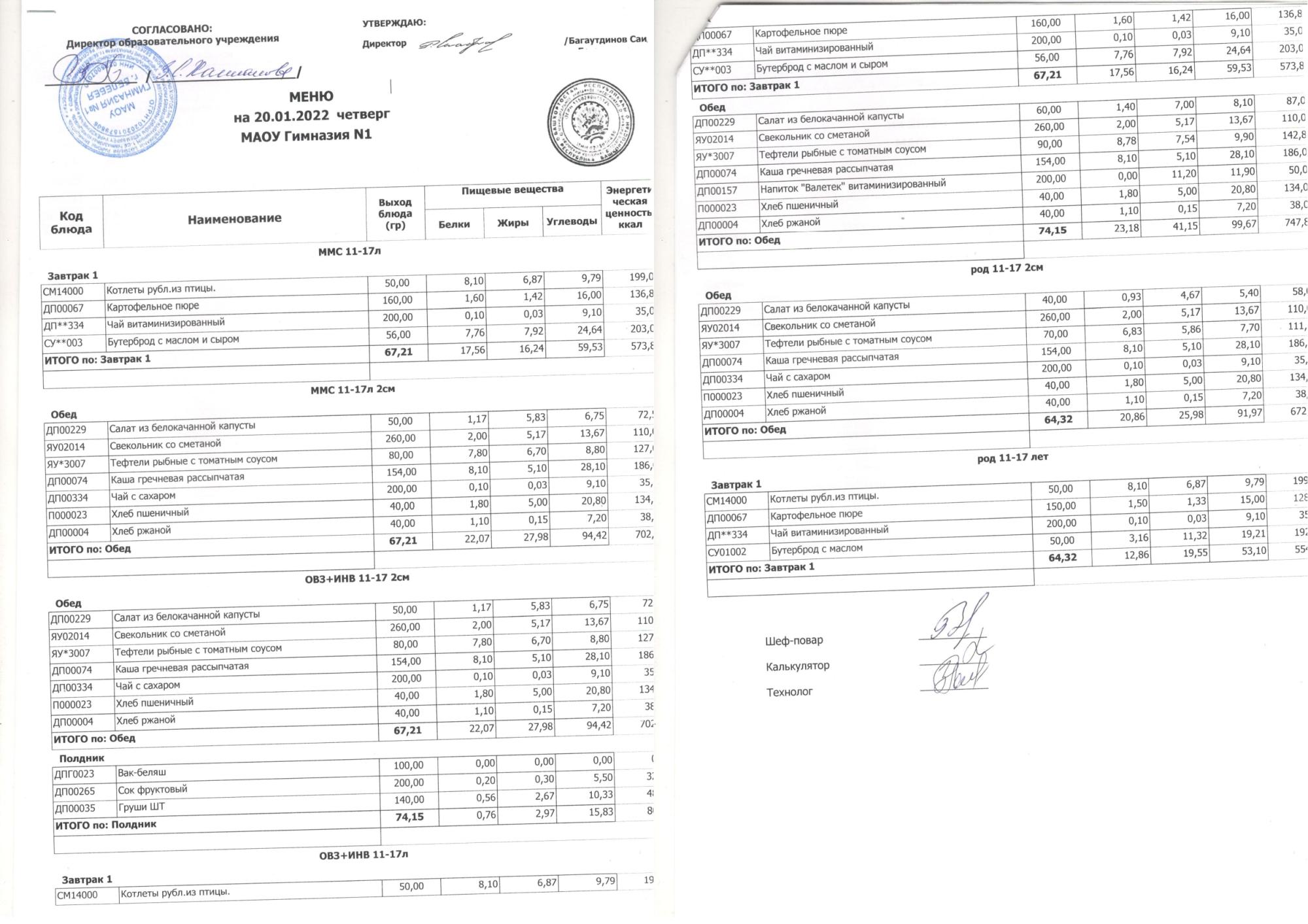 В данном разделе ежедневно размещается меню в виде скан-документа, а также фотографии блюд.