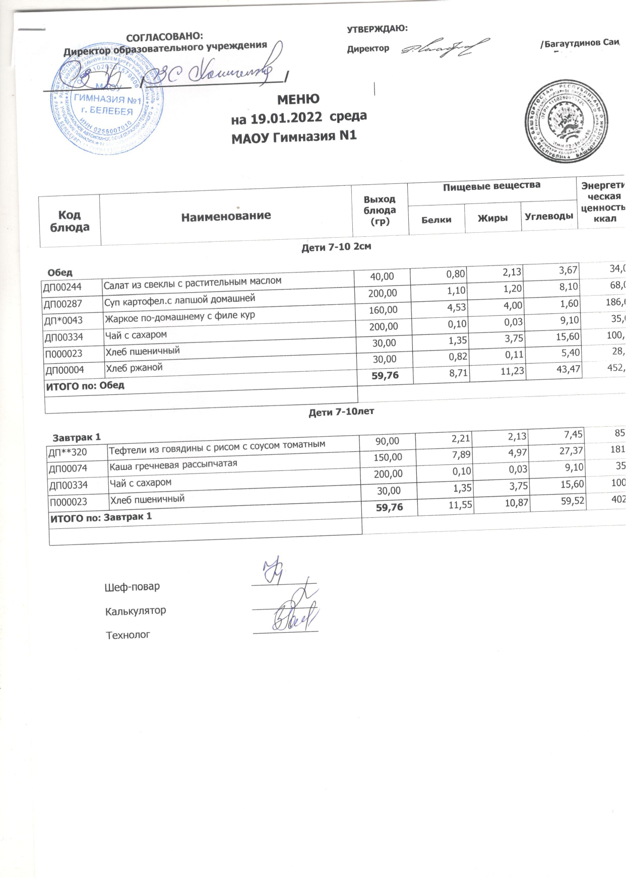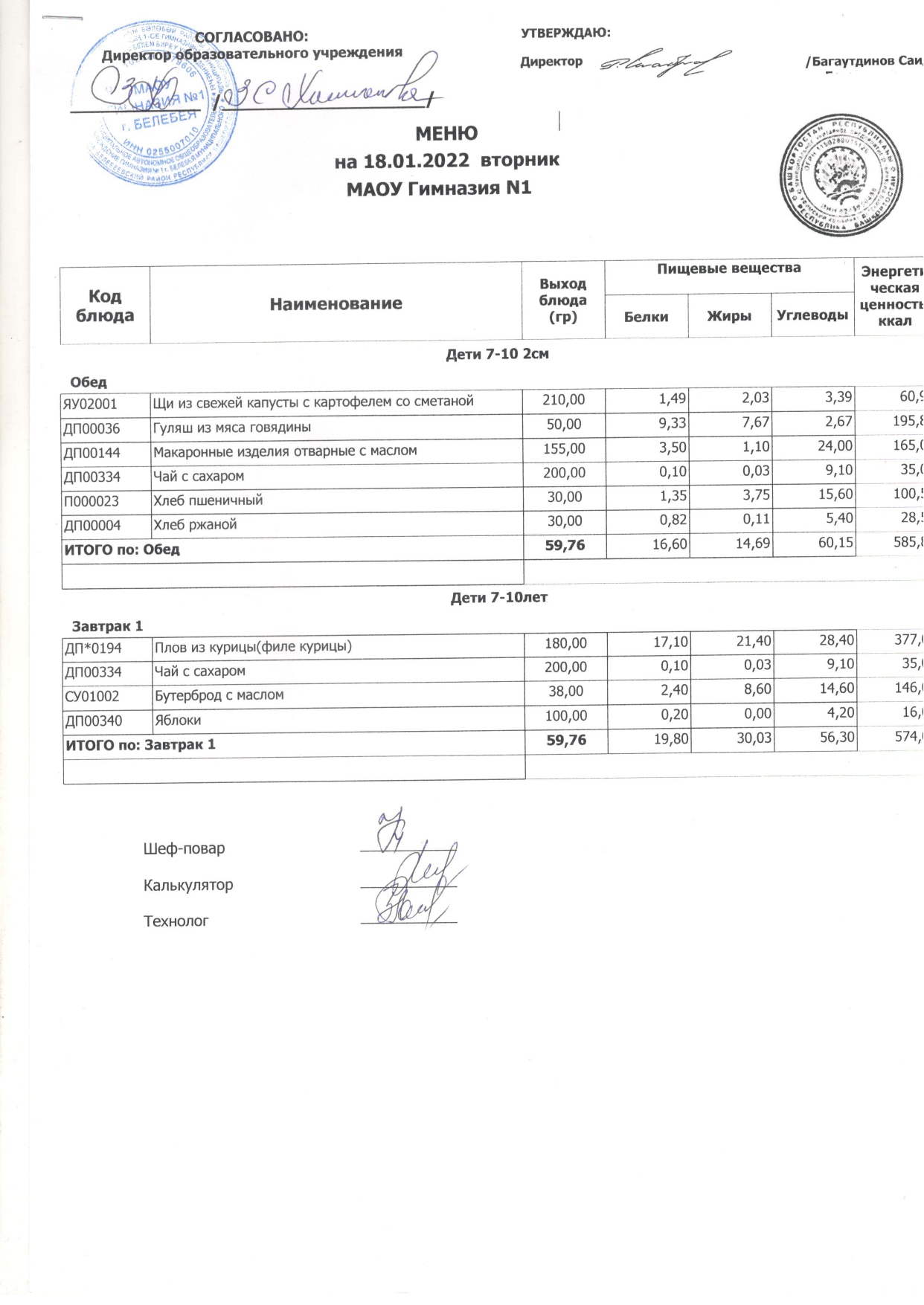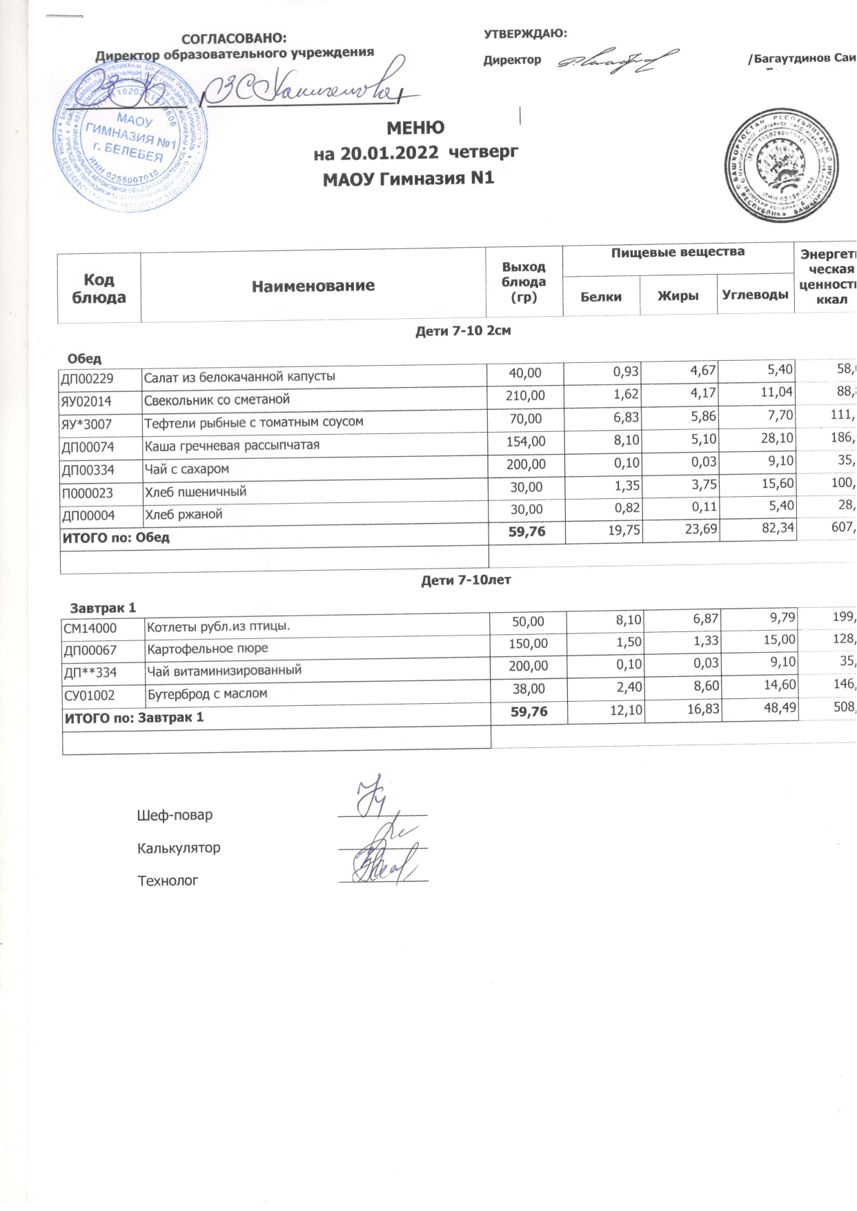 В данном разделе ежедневно размещается меню в виде скан-документа, а также фотографии блюд.