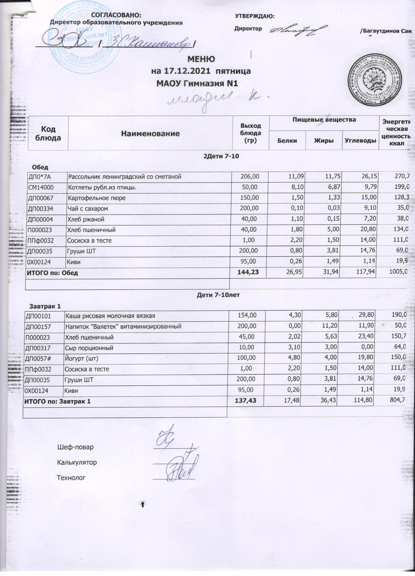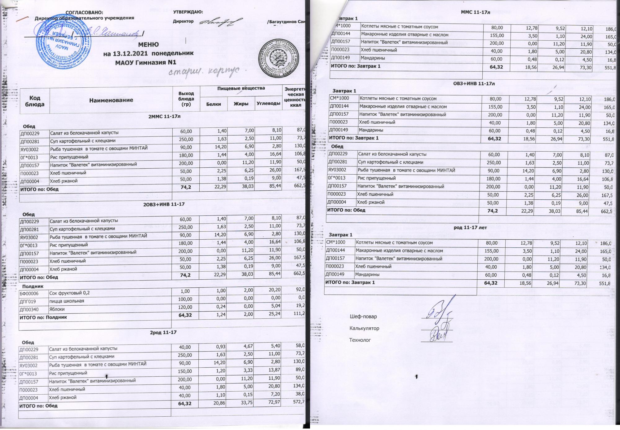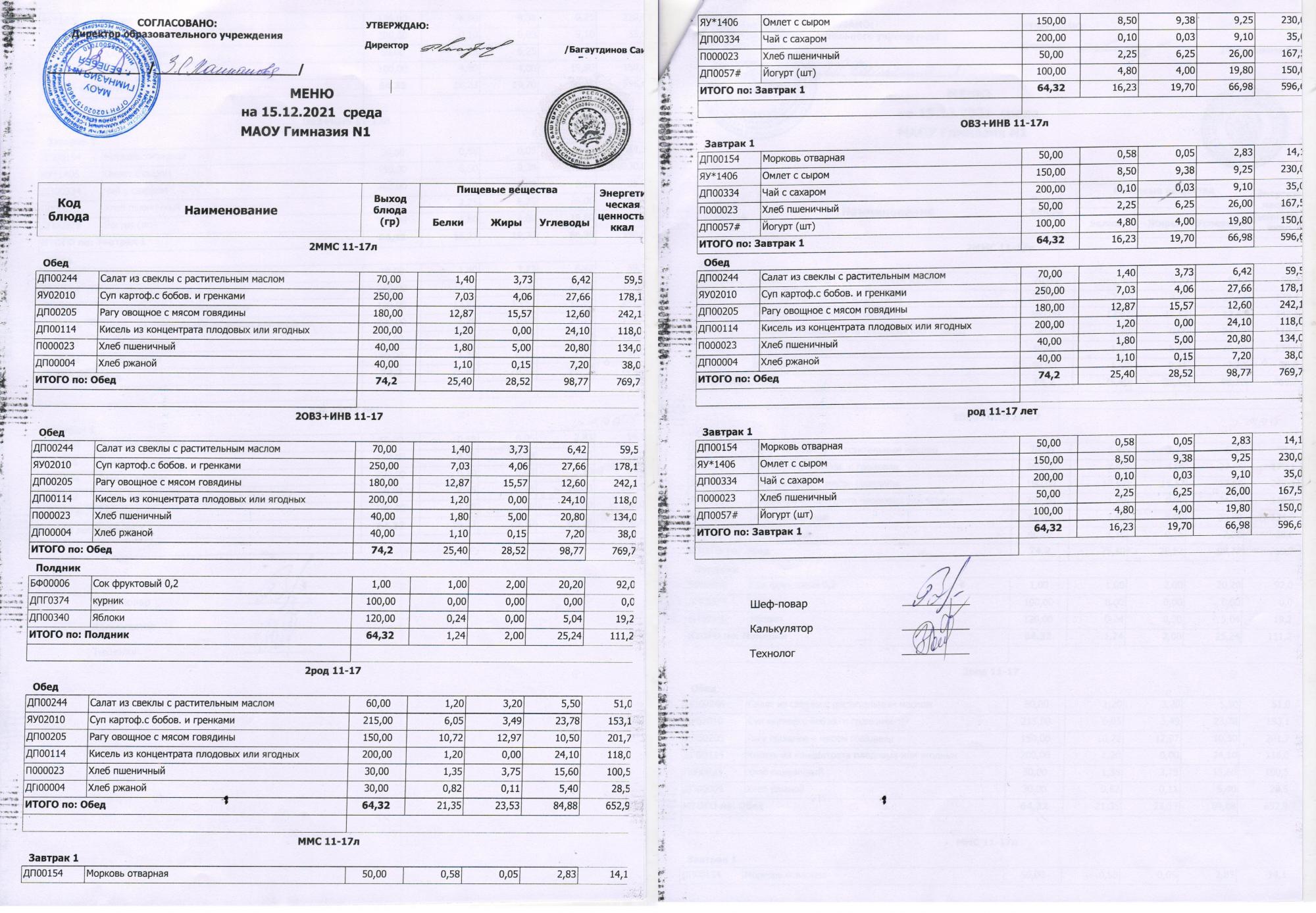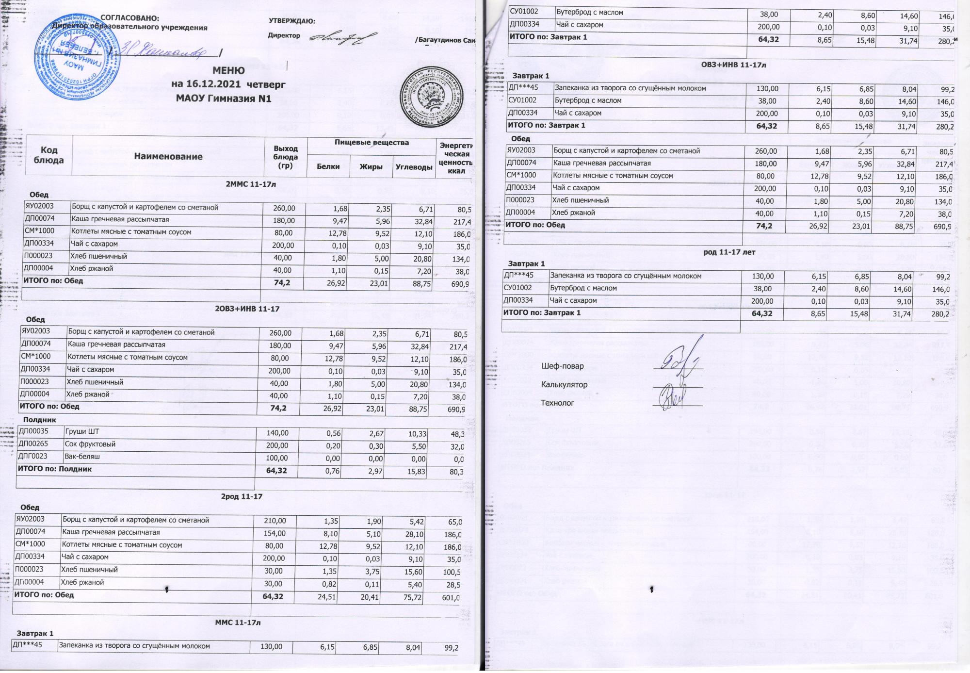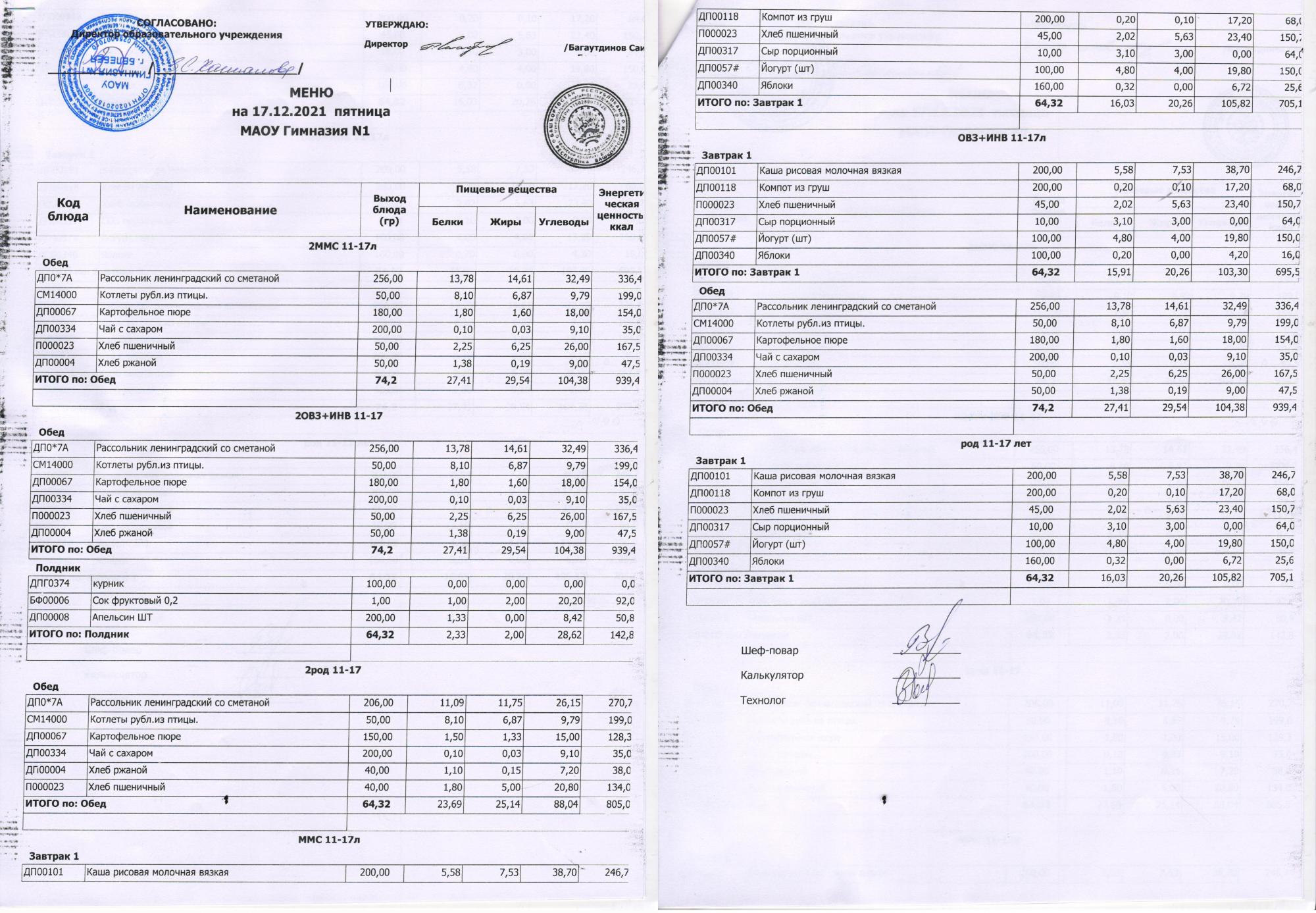 В данном разделе ежедневно размещается меню в виде скан-документа, а также фотографии блюд.