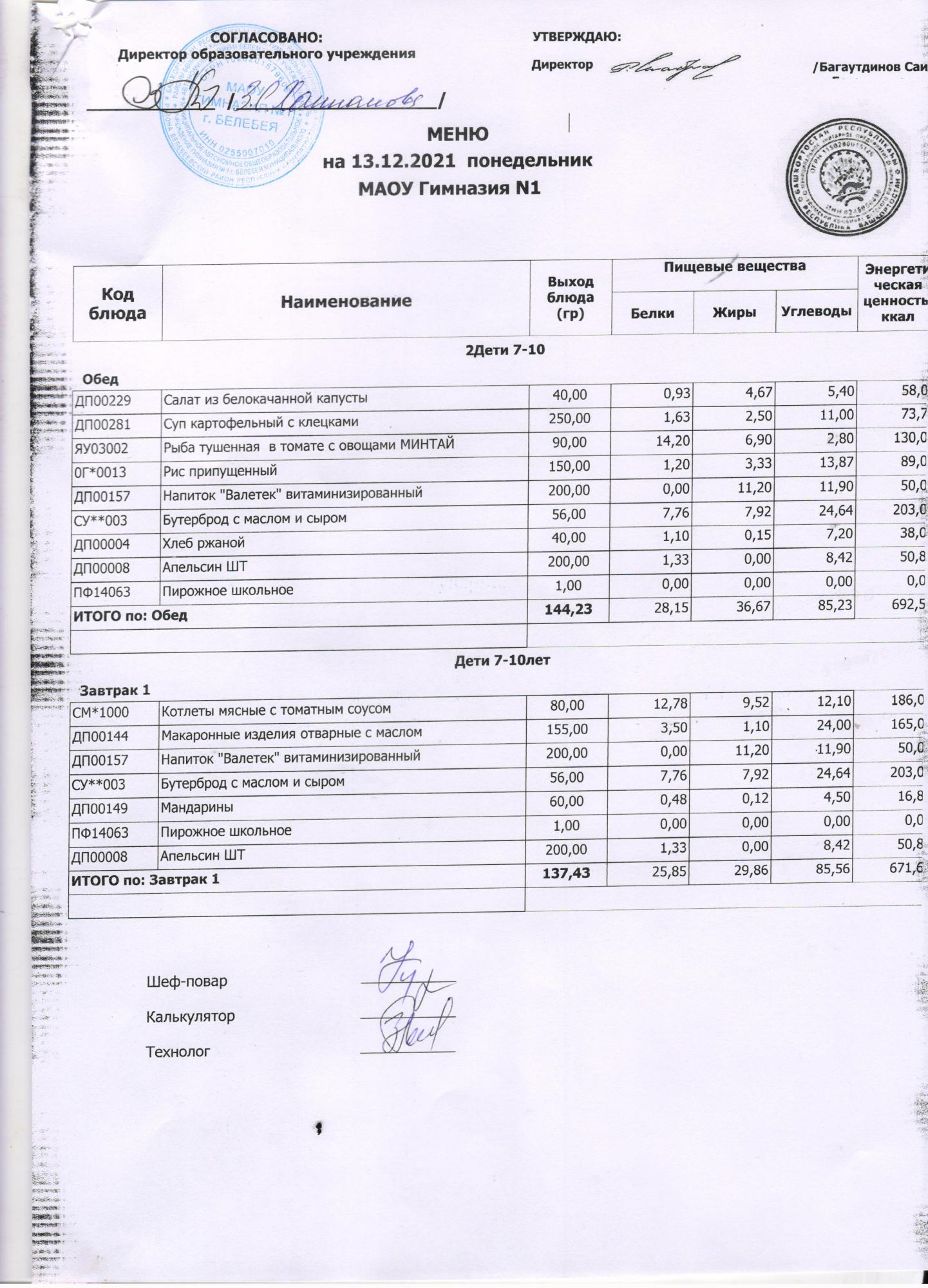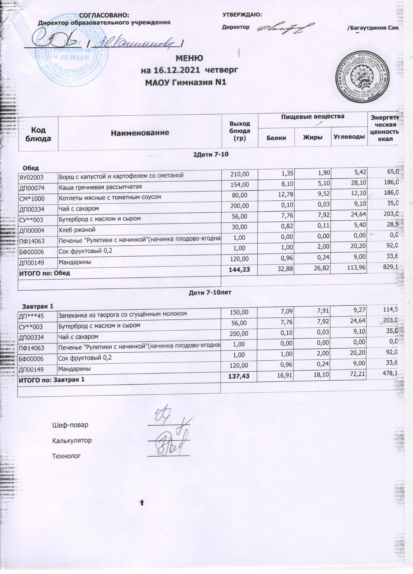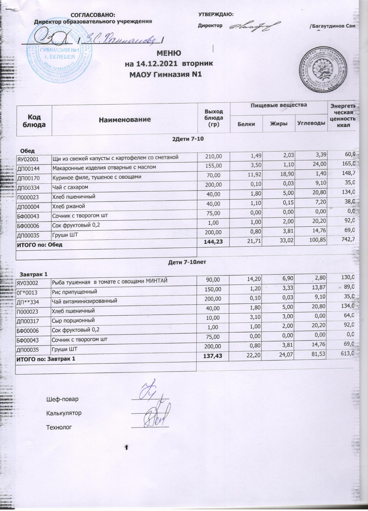 (Завтрак, 1-4 кл.)