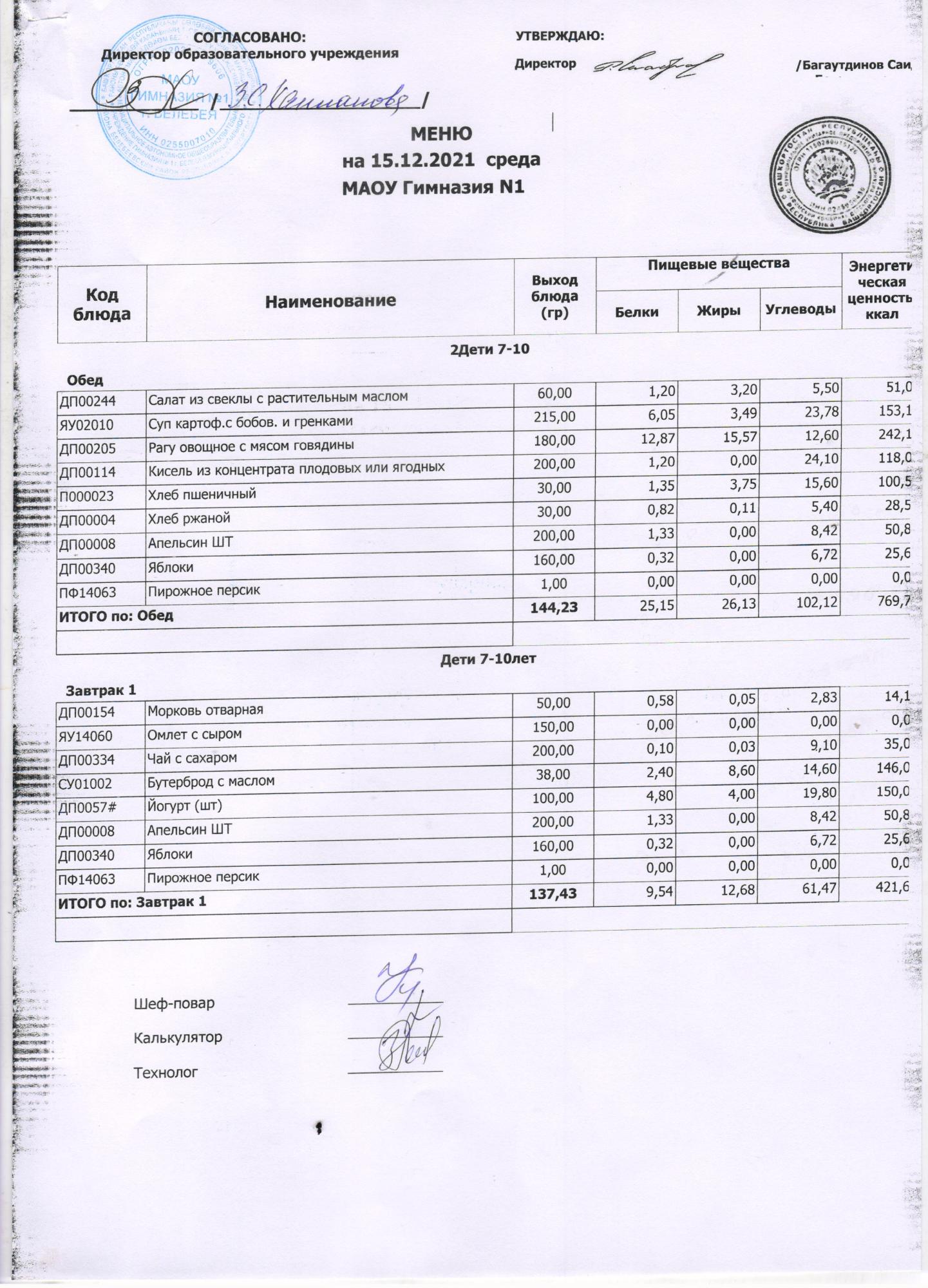 (Завтрак, 5-11 кл.)