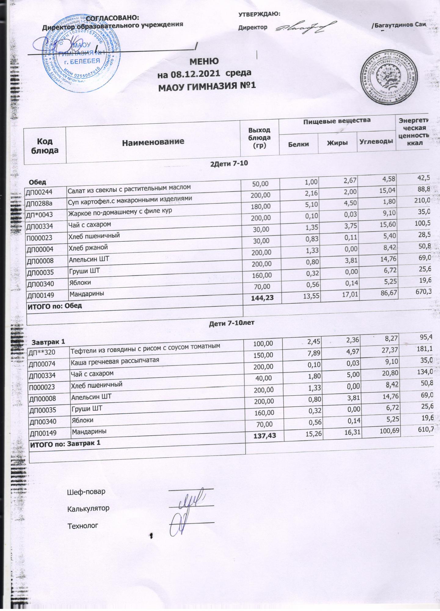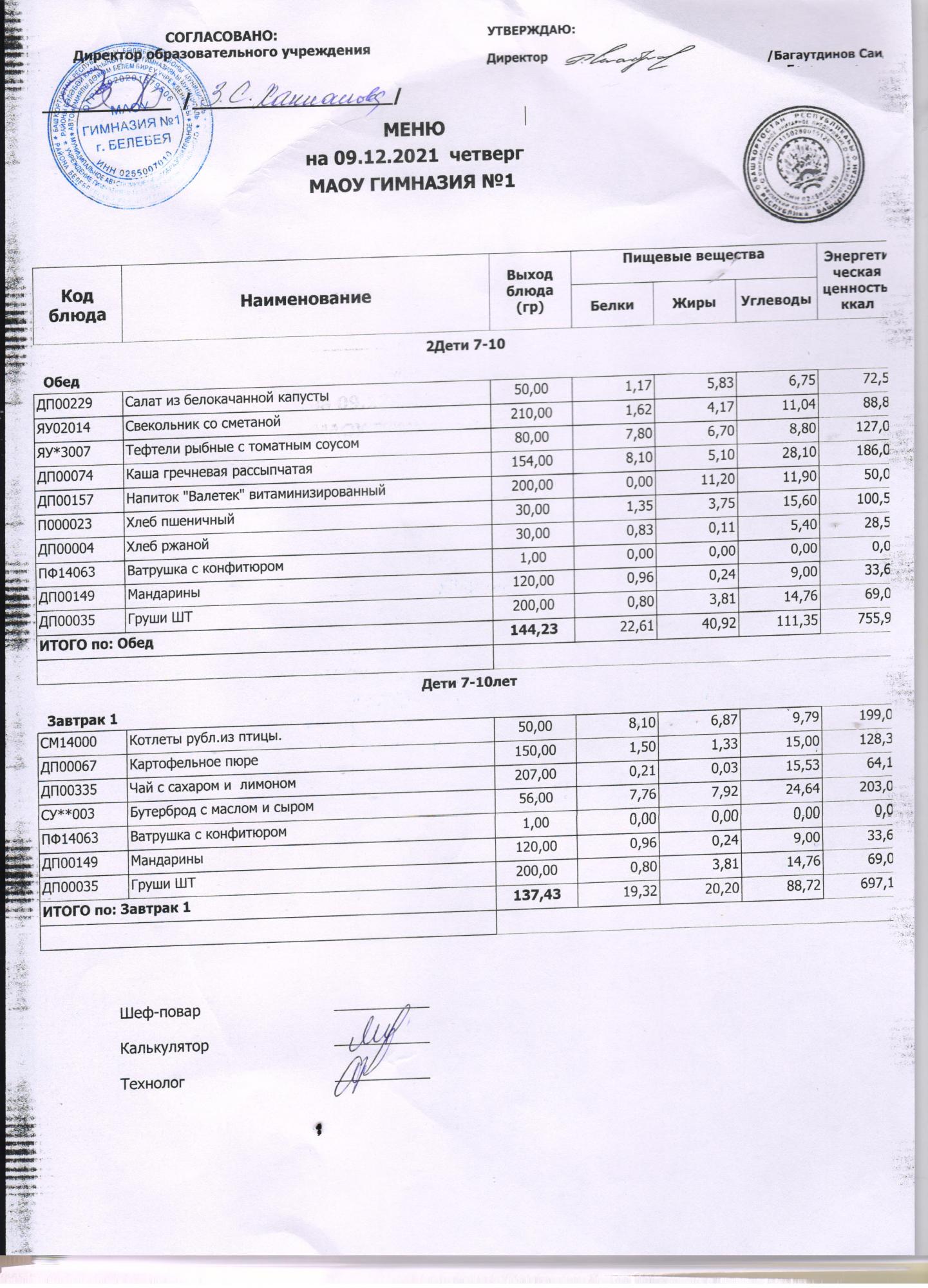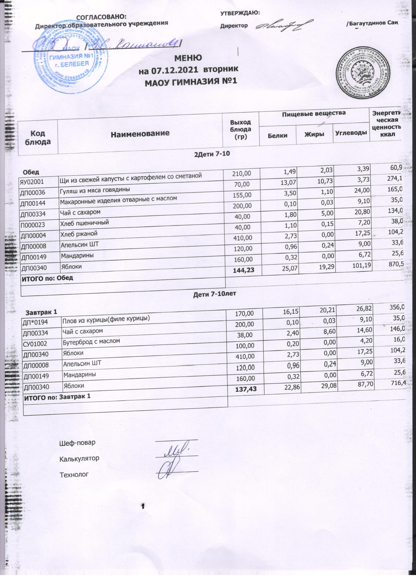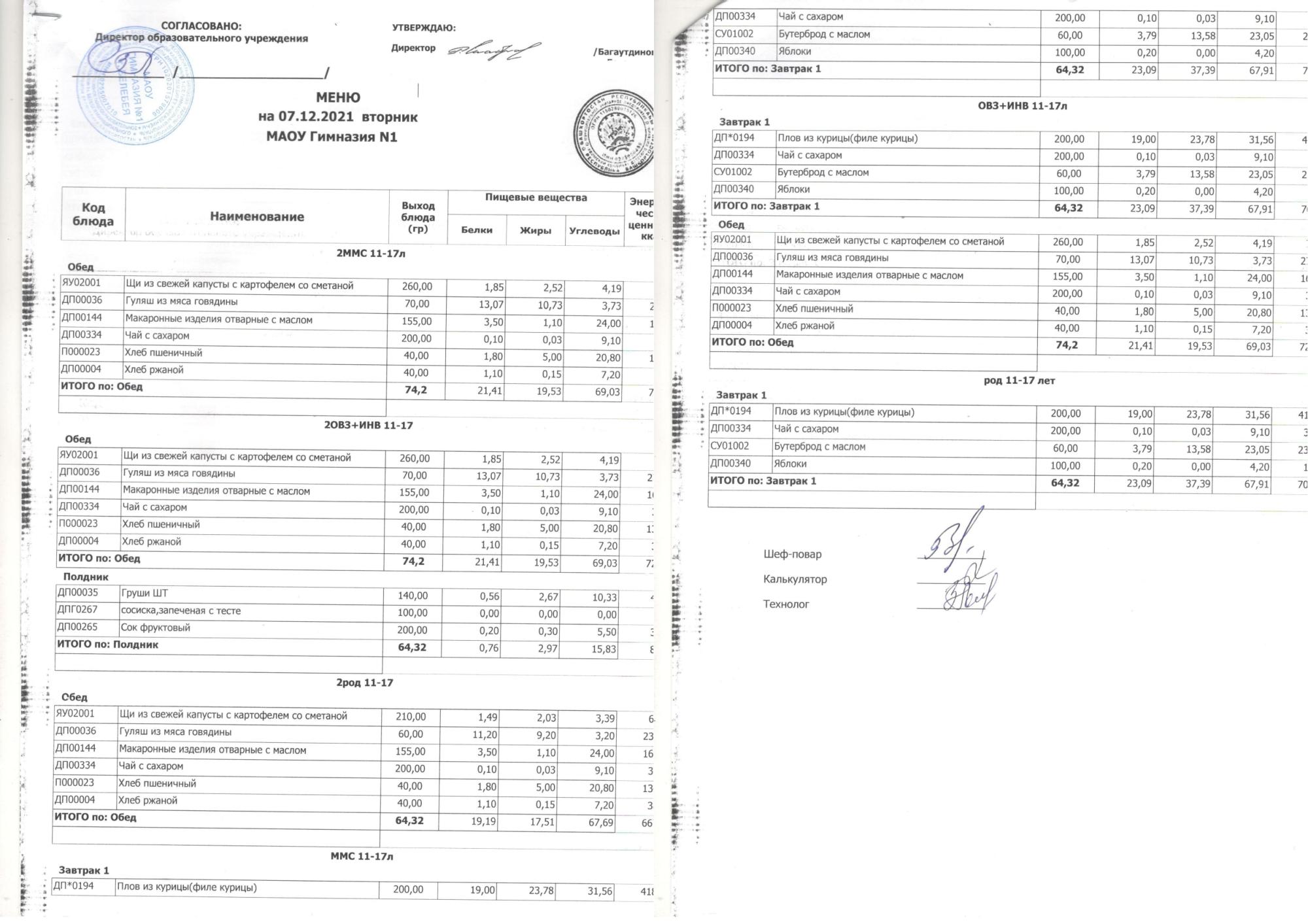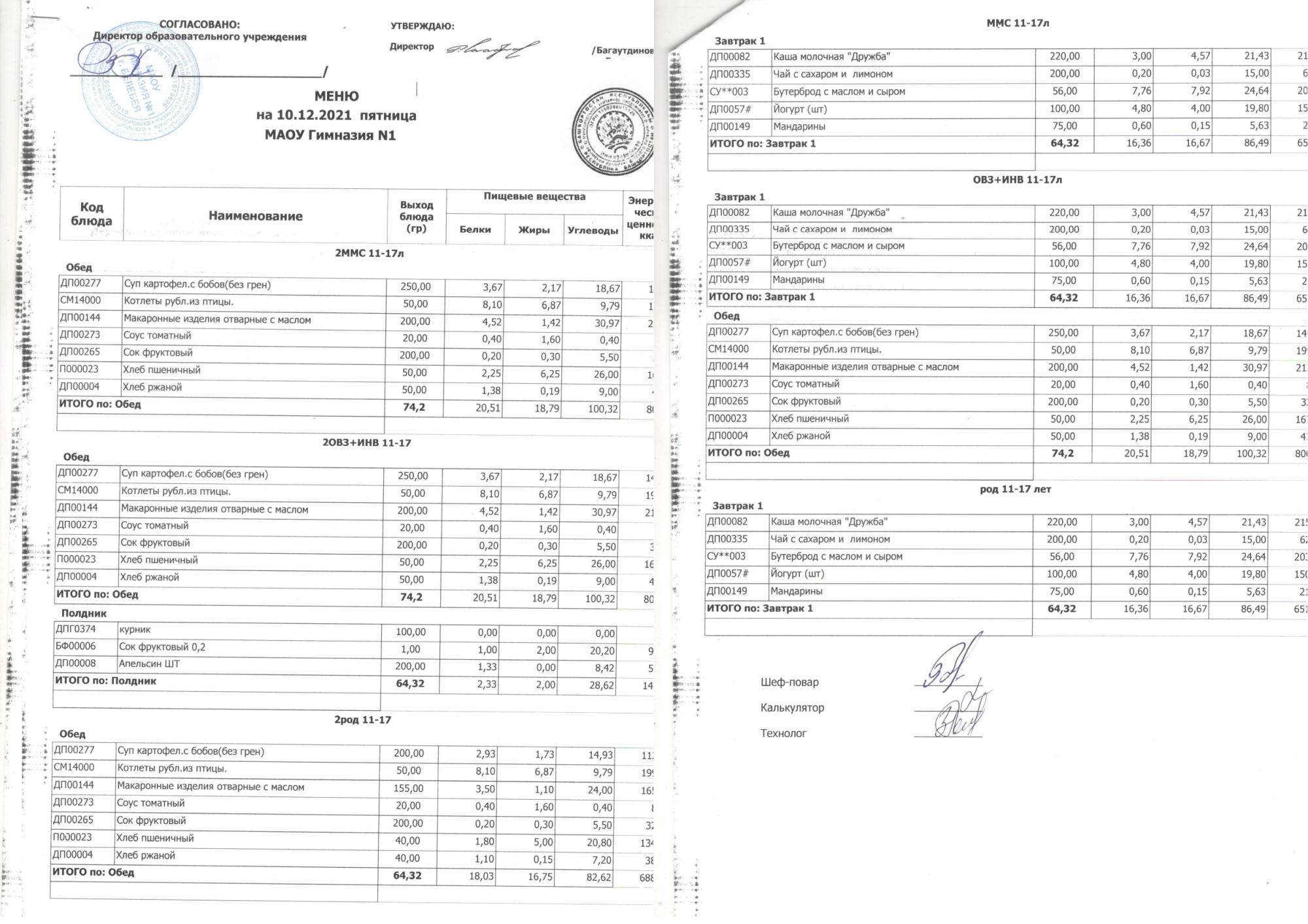 В данном разделе ежедневно размещается меню в виде скан-документа, а также фотографии блюд.