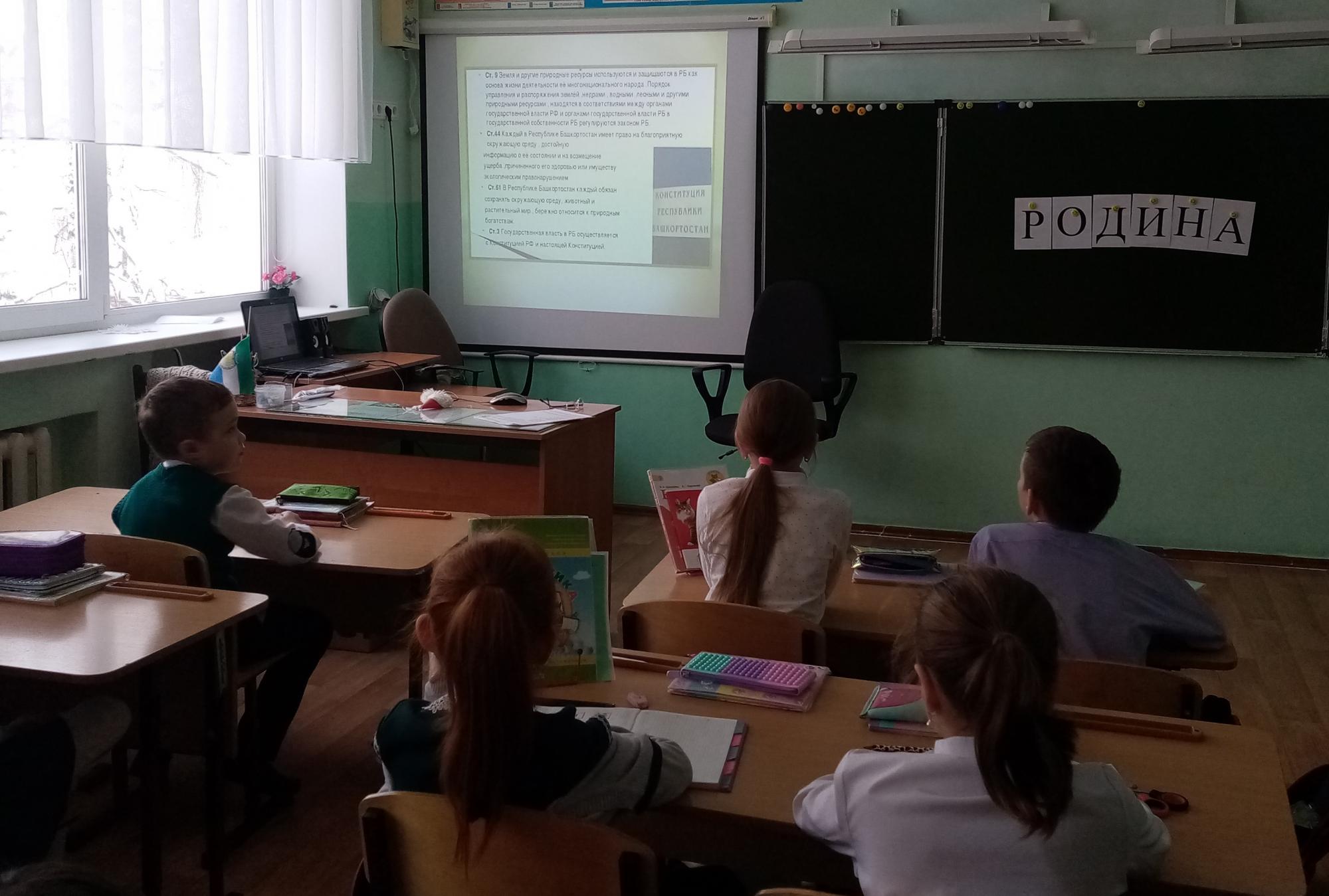 В преддверии этого дня в третьих классах прошли классные часы, целью которых было расширить знания учащихся о Родине, её символах, основных правах и обязанностях граждан РБ, о главной книге государства – Конституции Республики Башкортостан.