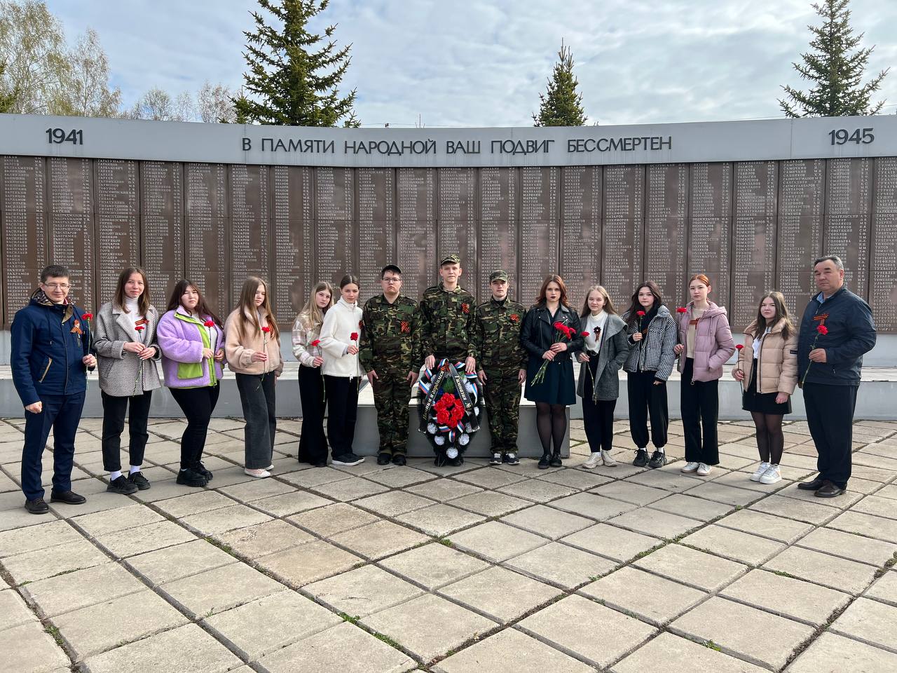 Ученики 10-11 классов приняли участие в церемонии возложения венка и цветов к Мемориальному комплексу Защитникам Отечества.