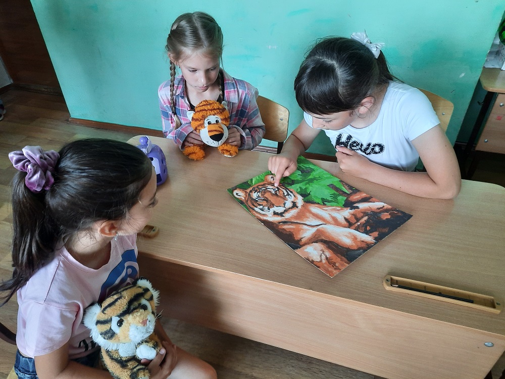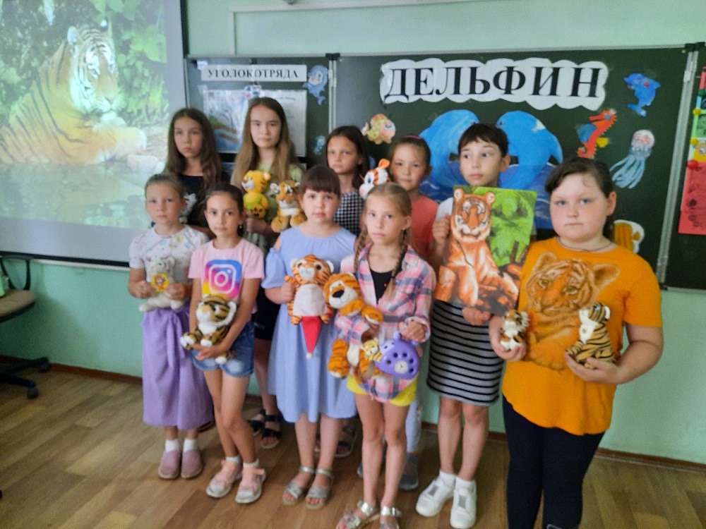 Сегодня в лагере дневного пребывания детей «Бригантина» с целью привлечения внимания к проблеме уязвимости тигров в современном мире и к вопросам защиты тигров и среды их обитания был проведён Всероссийский урок тигра.