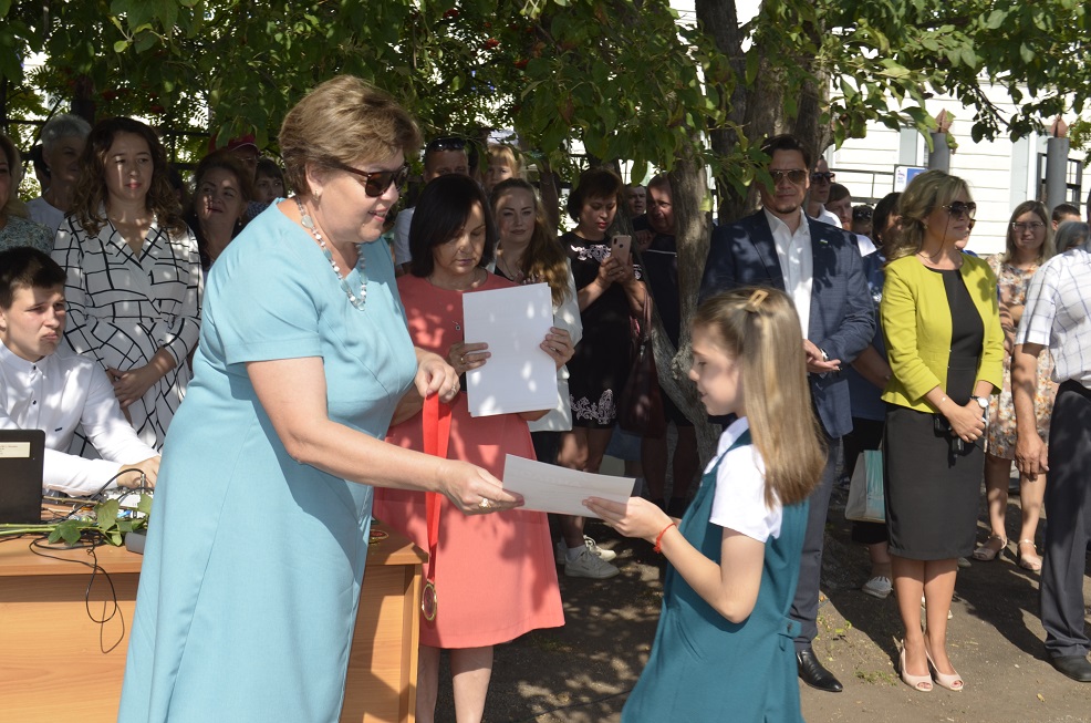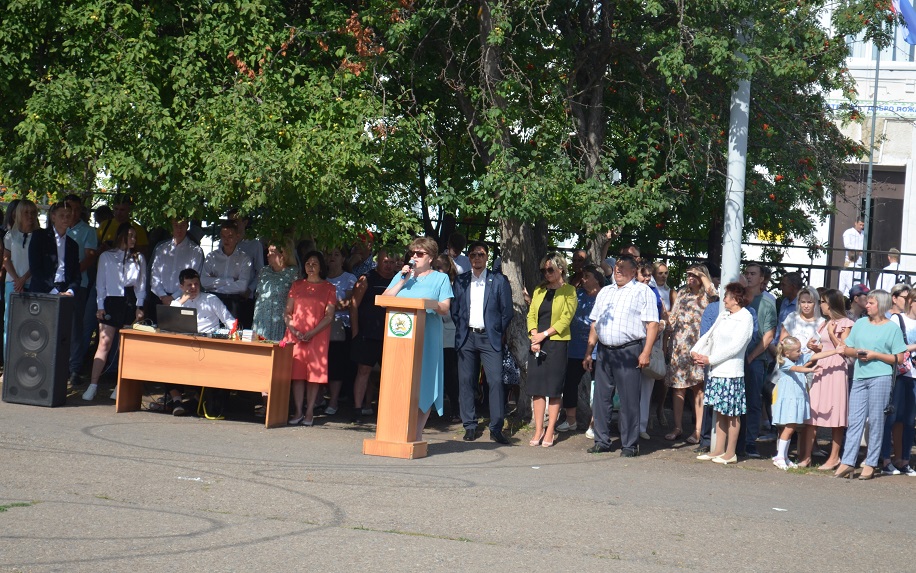 Директор гимназии Зарема Сарваровна Ханнанова и гости: заместитель Главы Администрации Татьяна Вадимировна Горденко, депутат Совета городского поселения г. Белебей муниципального района Белебеевский район Республики Башкортостан – Гатиятуллин Руслан Газизянович, председатель городского и районного комитета профсоюза работников образования - Борисов Владимир Моисеевич поздравили учащихся гимназии с новым учебным годом, отметив, что учение - нелегкий, но радостный и увлекательный труд. Пожелали, чтобы новый учебный год стал для всех ярким и плодотворным, наполненным интересными и полезными делами. День знаний продолжился классными часами на тему: «Урок мира». На классный час с беседой к семиклассникам пришла радиотелефонист, младший сержант Тарасова Дарья Валерьевна, которая ознакомила ребят с основными правилами безопасности дома, в гимназии и на улице. Школьникам подарили буклеты с телефонами экстренных служб города.