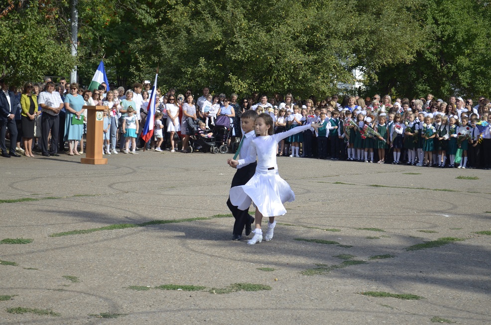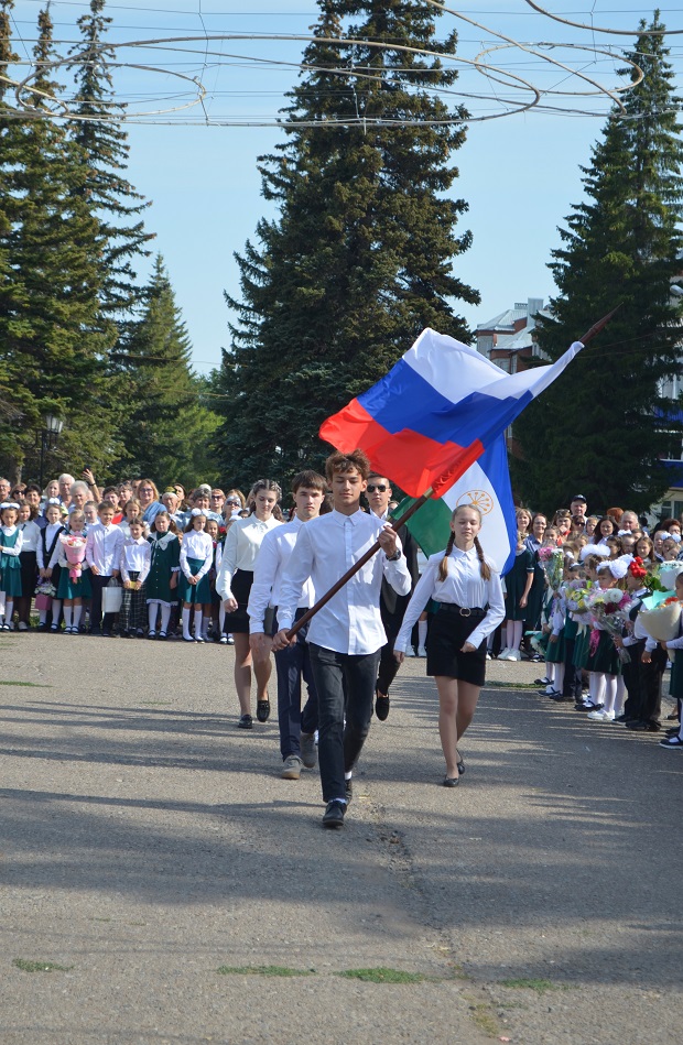 День знаний – это первые звонки и волнения, море цветов и белых бантов, и, конечно, встречи с одноклассниками, классными руководителями и любимыми учителями. Это самый долгожданный день для тех, кто впервые переступает школьный порог. 1 сентября гимназия распахнула свои двери для 79 первоклассников. Традиционно 1 сентября в гимназии проводится торжественная линейка. В этом году День Знаний для школьников впервые начался с торжественного выхода группы знаменосцев с флагами и исполнения гимнов Российской Федерации и Республики Башкортостан. Почетное право вынести государственный флаг РФ и РБ было предоставлено отличникам учебы, победителям и призёрам муниципального этапа Всероссийской олимпиады школьников, победителям спортивных состязаний и активистам!