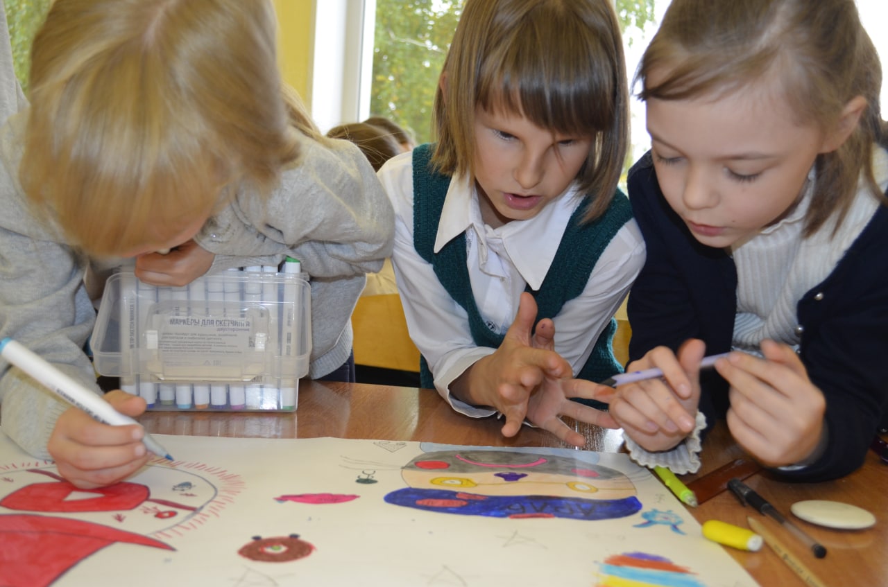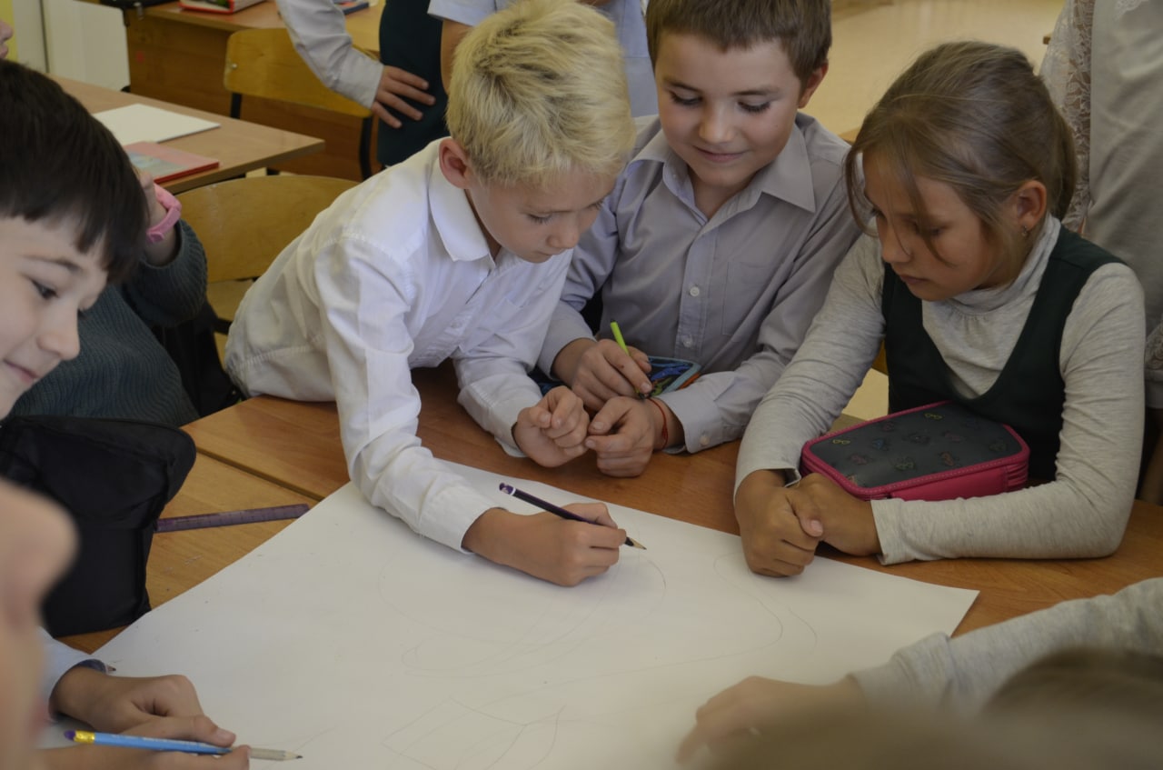 С учащимися начальной школы нашей Гимназии мы ненадолго стали продолжателями идей К.Э. Циолковского. Предварительно познакомились с планетами солнечной системы и придумали маршрут путешествия по планетам и созвездиям, оформив на листе ватмана. Нарисовали как выглядят жители других планет, как выглядят их жилища. Придумали язык общения с инопланетянами (жесты, рисунки, новый алфавит) и написали для них послание.