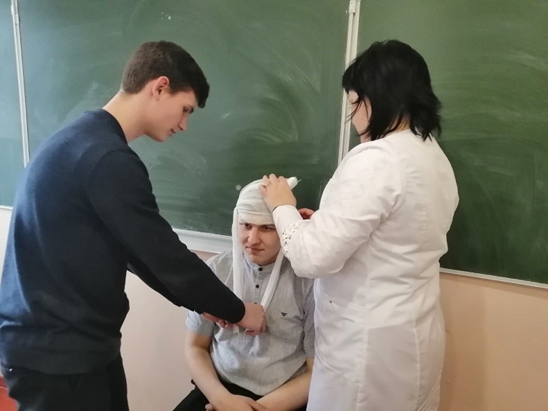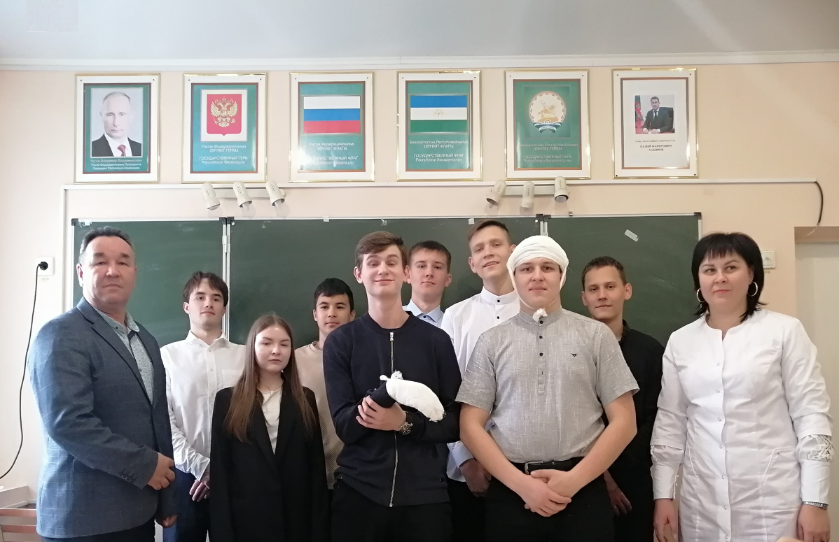 Сегодня в гимназии № 1 г. Белебея, в рамках месячника по гражданской обороне, прошло занятие по оказанию первой помощи пострадавшим. На открытом мероприятии приняла участие специалист Белебеевского медицинского колледжа Корнейчук Наталья Сергеевна. Она ознакомила учащихся 11 класса с приёмами оказания первой помощи применительно к характеру полученной травмы. Ребятам объяснили, что прежде чем приступить к оказанию первой помощи, необходимо оценить состояние пострадавшего, определить характер и тяжесть полученной травмы. До прибытия медицинского работника поддерживать основные жизненные функции организма пострадавшего. При необходимости принять меры для его транспортировки в ближайшее лечебное учреждение.