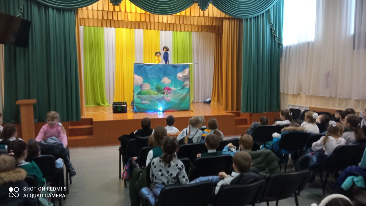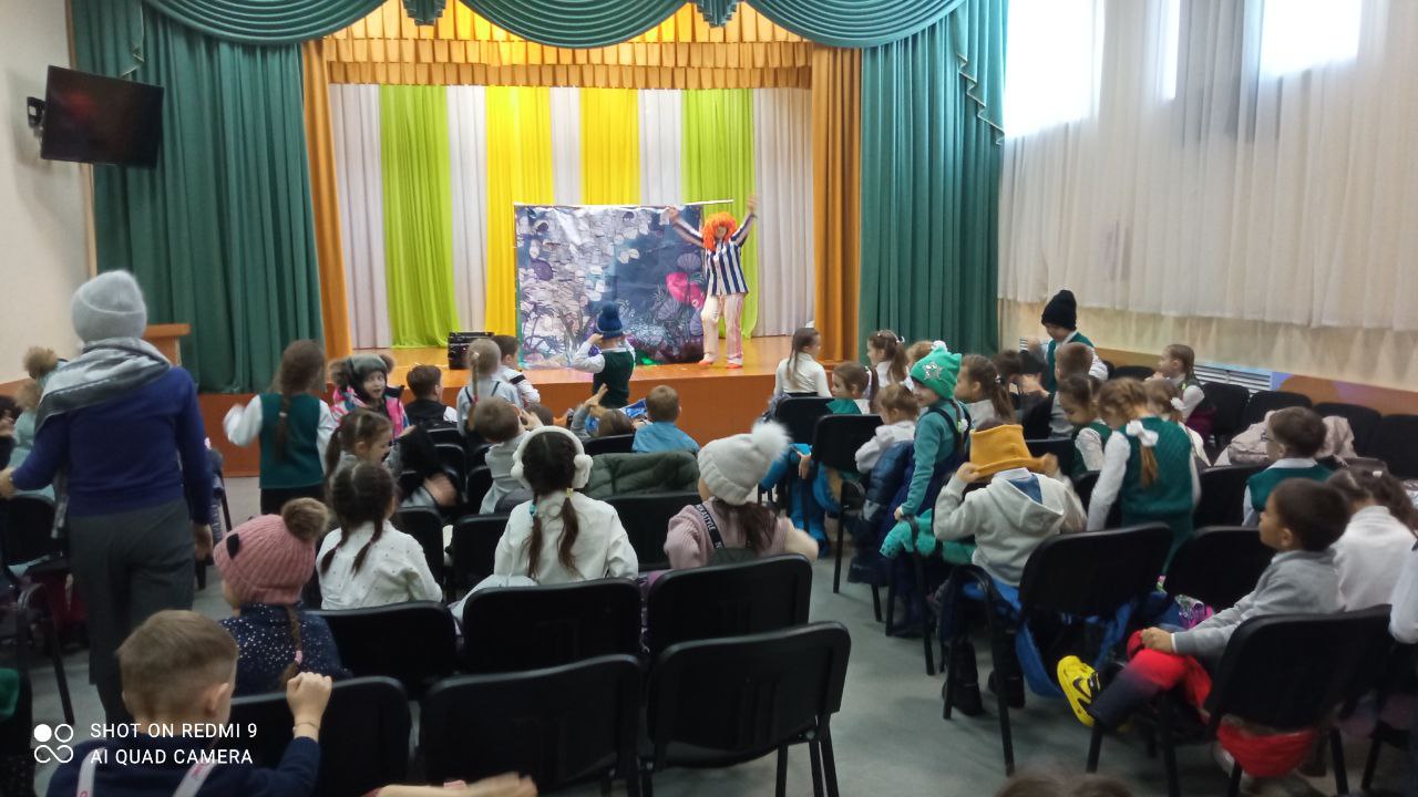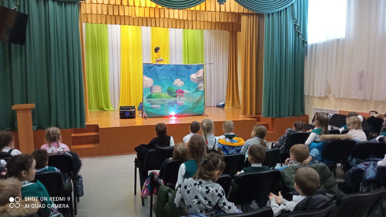 06.12.2022 г. учащиеся начальных классов посмотрели спектакль на экологическую тему «Приключения рыбки Поньë» театра кукол г. Уфа. Ребята вместе с героями сказки увидели с какими экологическими проблемами сталкиваются обитатели морей. Выяснили, что можно сделать, чтобы не засорялись водоёмы. Учащиеся были участниками представления, помогали рыбке Поньё и её другу преодолевать все трудности, которые встречались героям во время путешествия.
