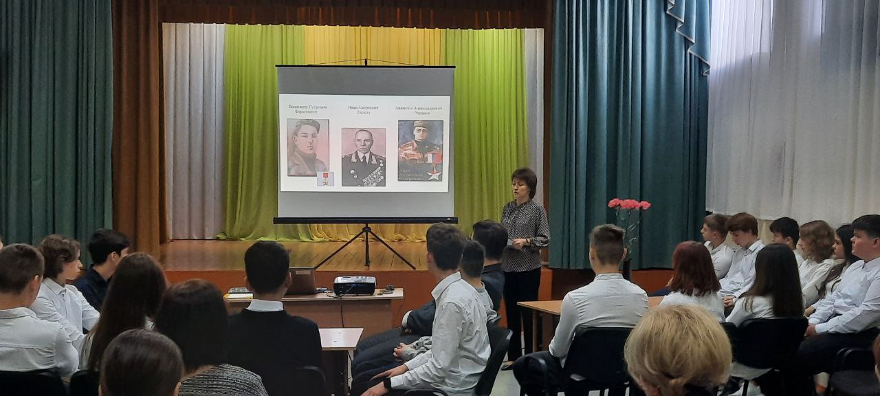 Гимназистам показали фрагменты фильмов о военном времени нашей страны и презентацию, из которой ребята узнали об истории военных наград, о подвигах, отваге и мужестве людей.