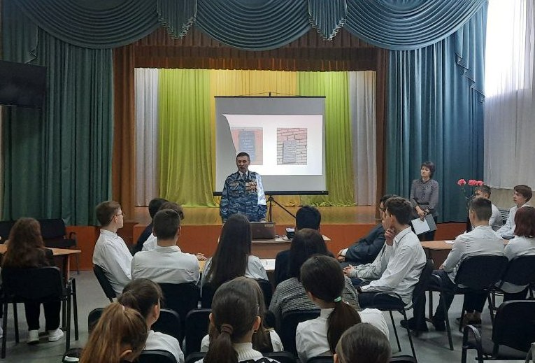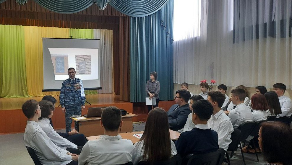 Руководитель Белебеевского местного отделения Всероссийской общественной организации ветеранов «Боевое братство», ветеран МВД, участник войны в Афганистане Рим Зуфарович Багманов рассказал учащимся о службе в армии, в каких условиях проходили боевые дежурства, как проходили боевые рейды в кишлаки.