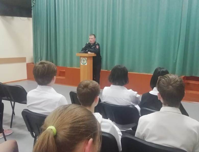 Инспектор ОДН провел беседу и акцентировал внимание обучающихся на факторы негативного влияния на подростков, молодежные течения противоправной направленности, об административной и уголовной ответственности за совершение противоправных действий.