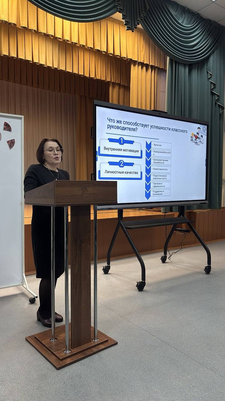 Заместитель директора по воспитательной работе гимназии Сабирова Г.Т. выступила с докладом о ключевой роли классного руководителя в современной школе, подчеркнув, что это не просто администратор, а связующее звено между учениками, родителями и учителями, отвечающий за воспитание, социализацию, мотивацию, создание дружного коллектива, помощь в учебе, выявление способностей и психологическую поддержку, формируя личность и обеспечивая единство требований семьи и школы.Опытом применения продуктивных педагогических идей поделилась Белоус Ангелина Сергеевна, классный руководитель 3Б класса.