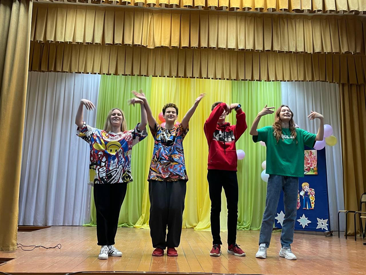 После уроков в гимназии состоялся традиционный праздничный концерт, на который были приглашены все педагоги. Звучали песни, демонстрировались театральные миниатюры и танцы.