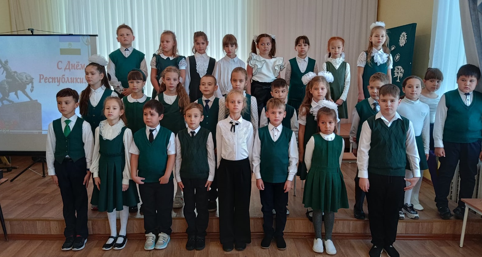 10 октября 2022 года учащимися 2 Б класса была проведена торжественная линейка для вторых и третьих классов. Ребята еще раз напомнили о символах нашей Республики, о прекрасной природе, о достопримечательности нашей Республики. Прочитали стихи башкирских писателей, исполнили гимн Российской Федерации и гимн Республики Башкортостан. Торжественную линейку завершила ученица 2 Б класса Гимаева Амина гимнастическим номером.