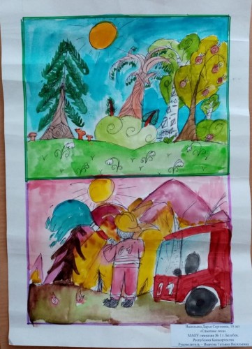 II место - работы «Покорность огня» (4 Б класс), «Спасение леса» (4 В класс);