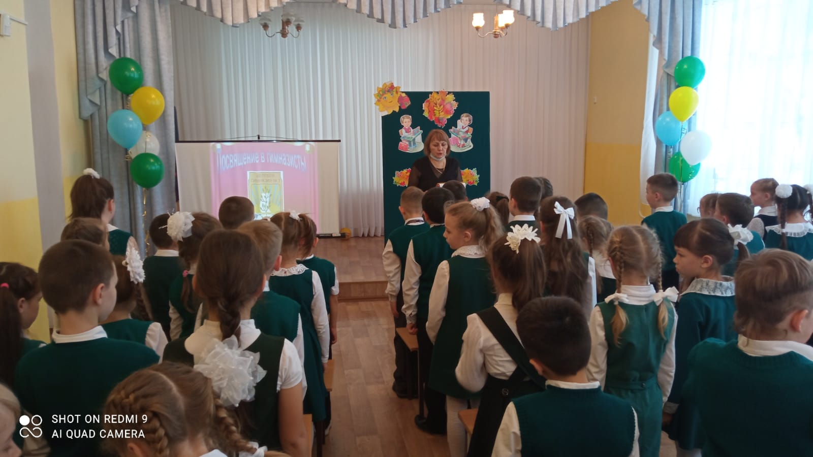 Церемония посвящения в гимназисты проходила в торжественной обстановке. Ребята читали стихи, решали на внимание задачи, исполняли песни, показывали все свои таланты.